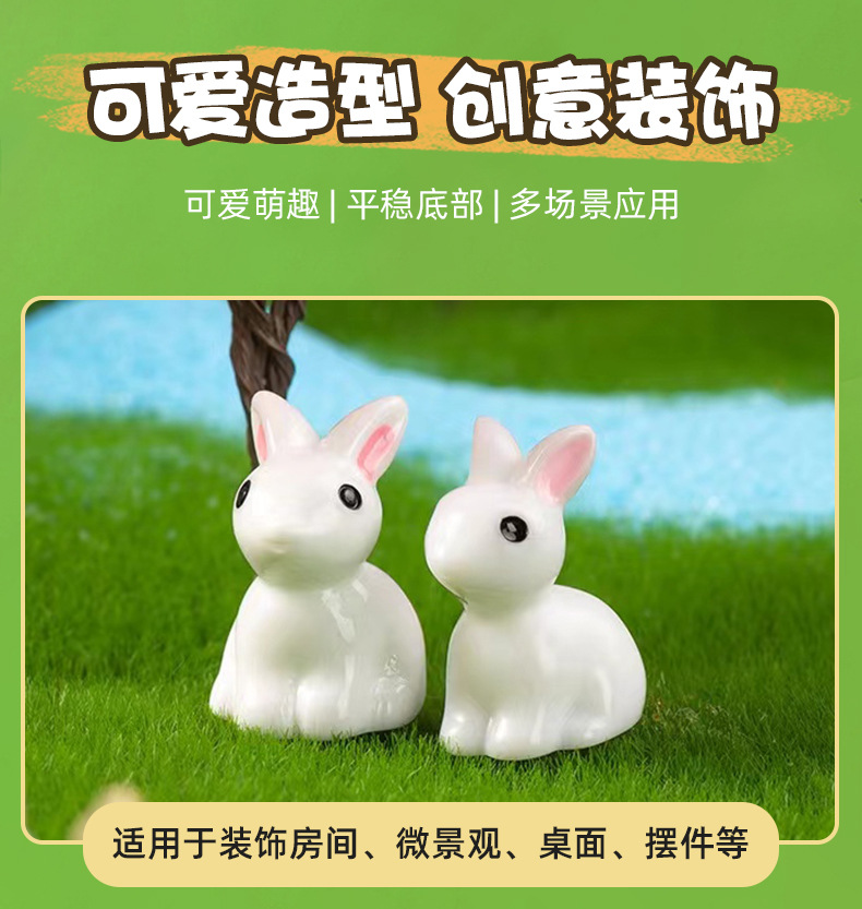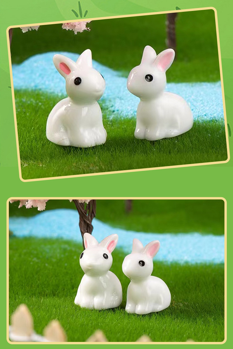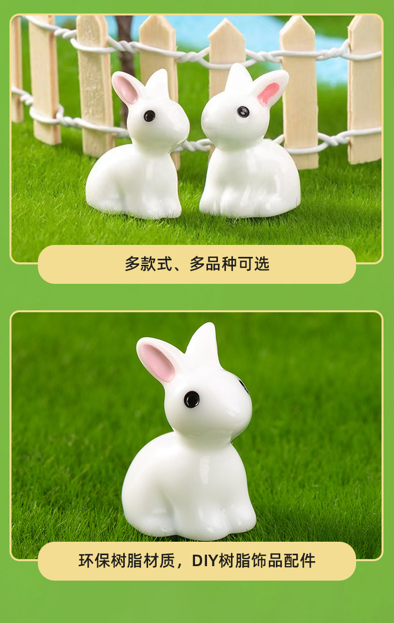 귀여운 작은 흰색 토끼 자동차 장식 수지 공예 DIY 작은 장식품 데스크탑 장식 마이크로 풍경 작은 장식품스토어 가기