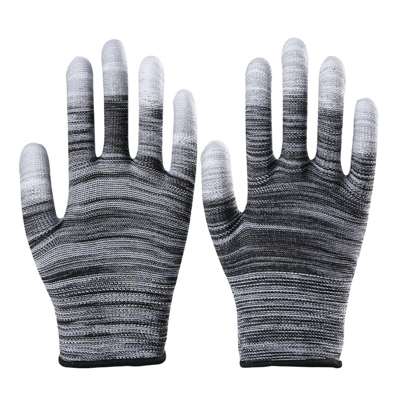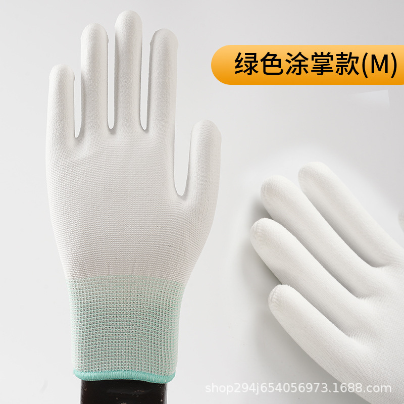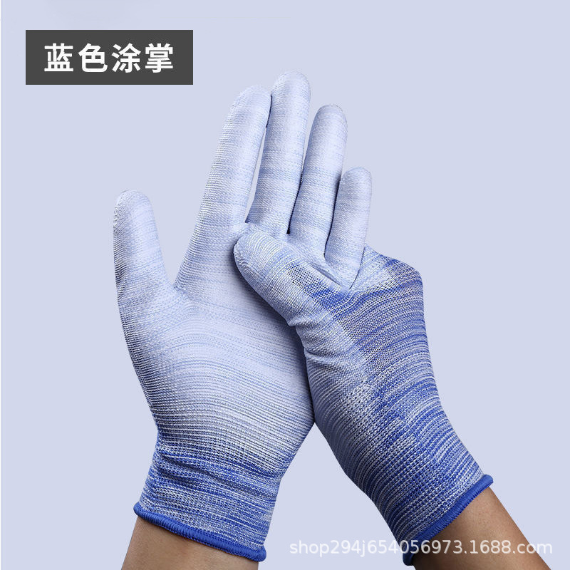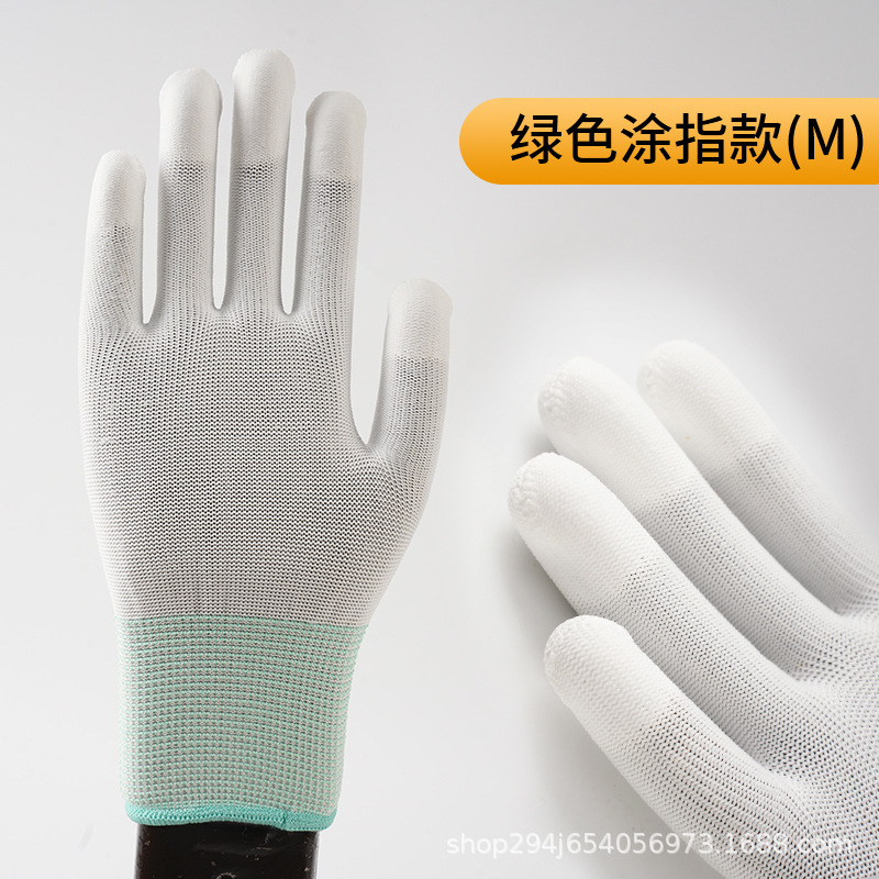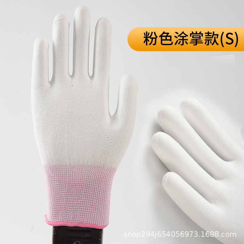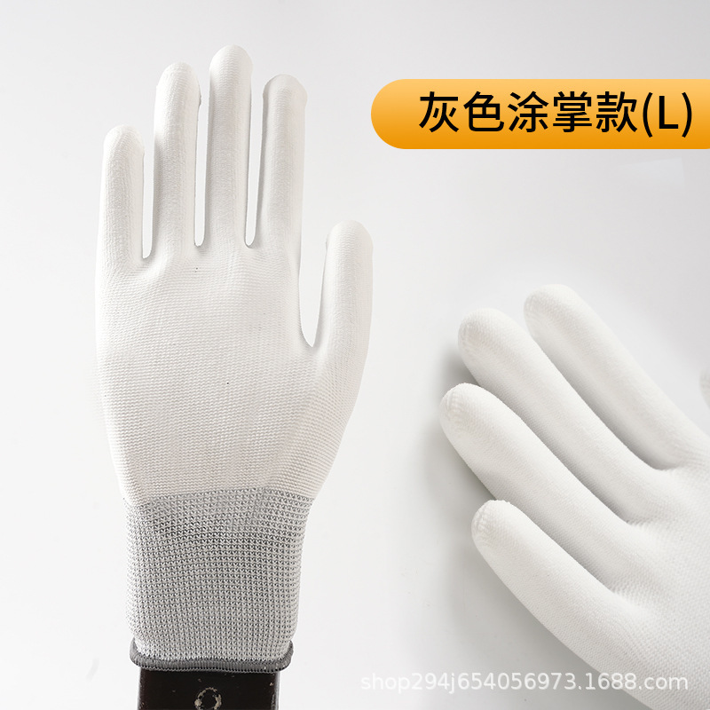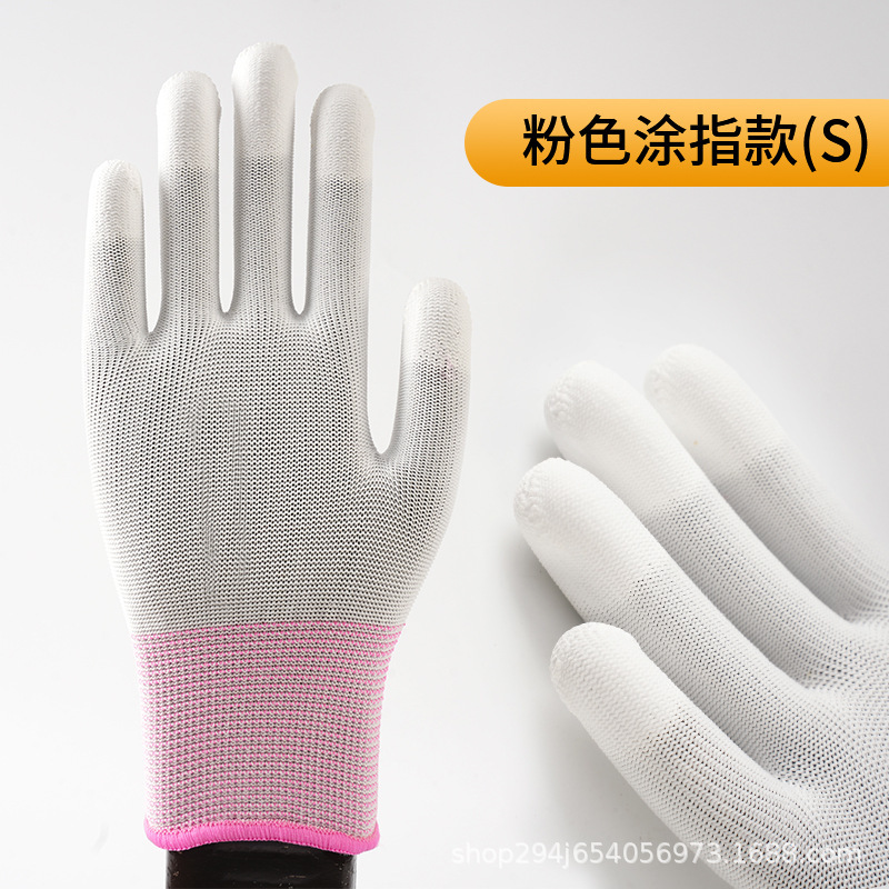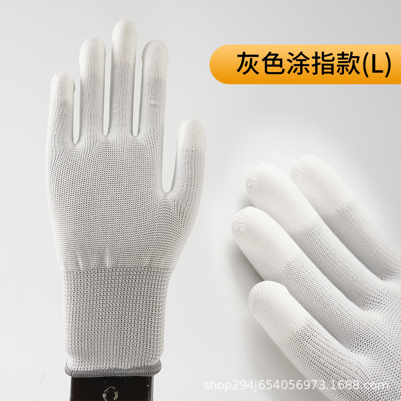 PU 코팅 손가락 코팅 손바닥 13 핀 나일론 장갑 접착제 먼지없는 전자 공장 흰색 노동 보호 정전기 방지 고무 가죽 장갑