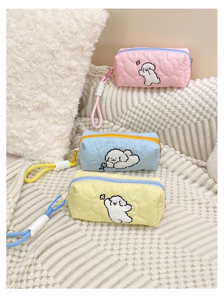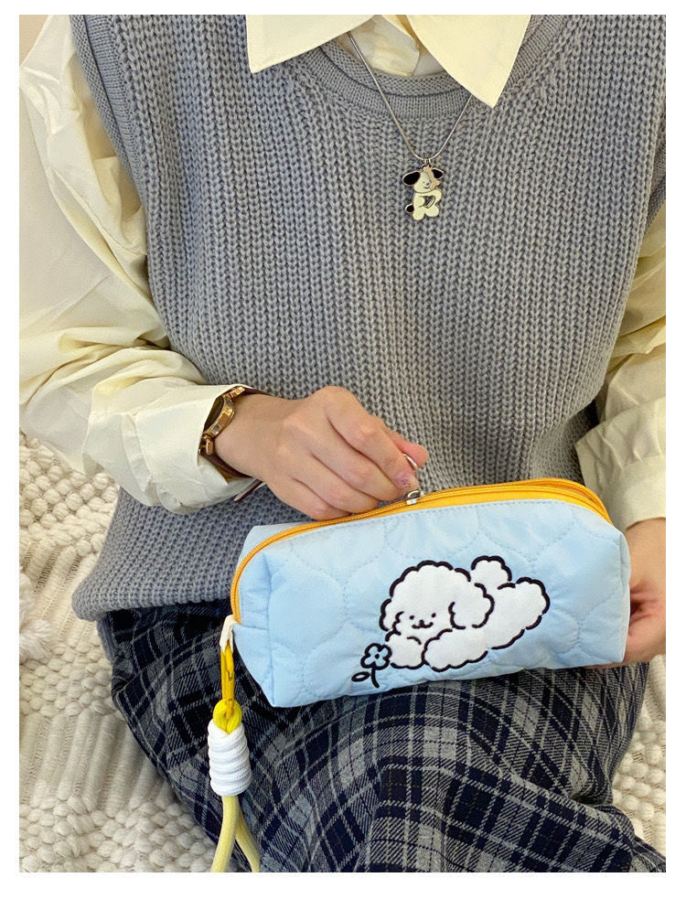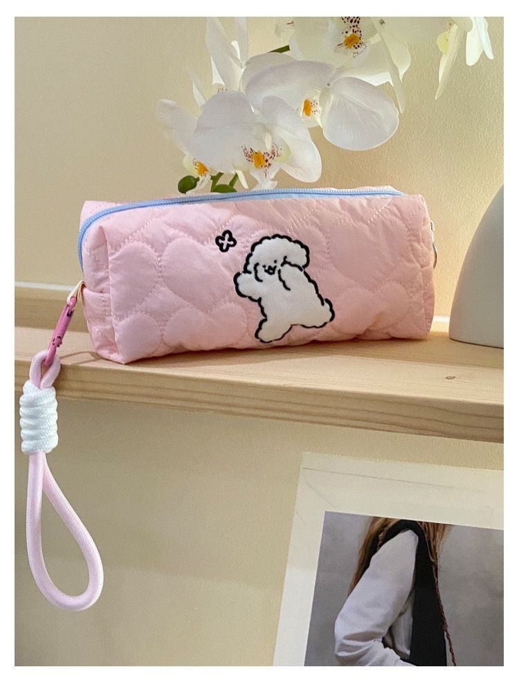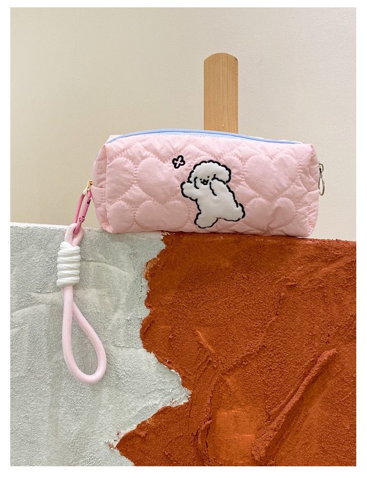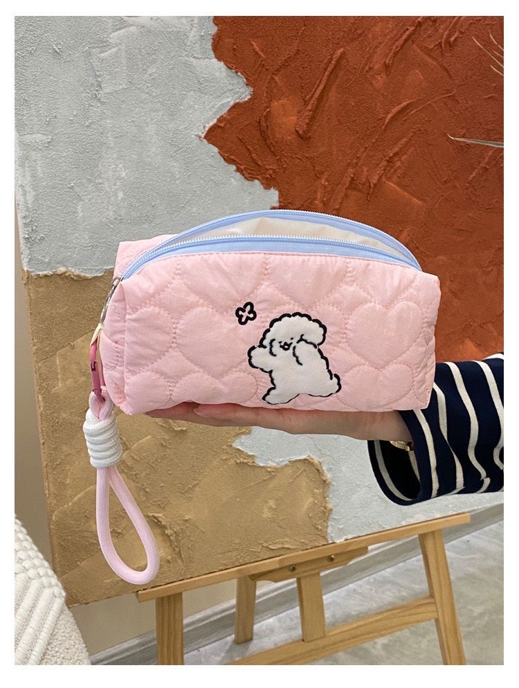 라인 강아지 연필 케이스 대용량 귀여운 소녀 심장 중학교 학생 연필 케이스 휴대용 강아지 인쇄 연필 가방