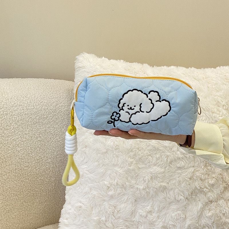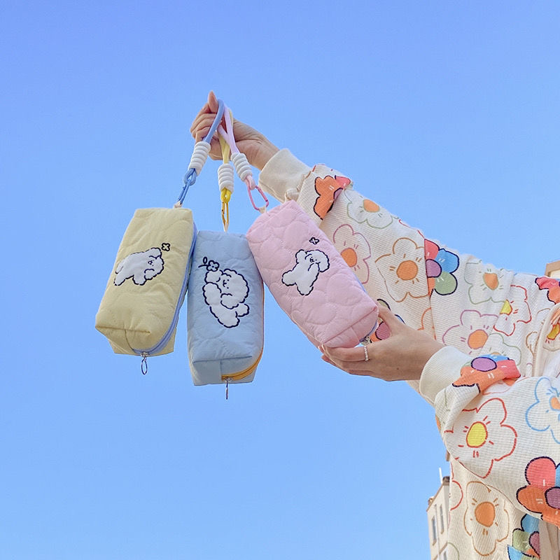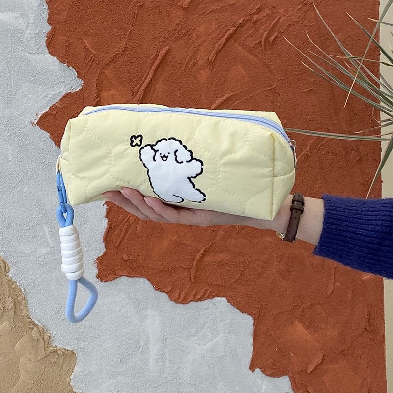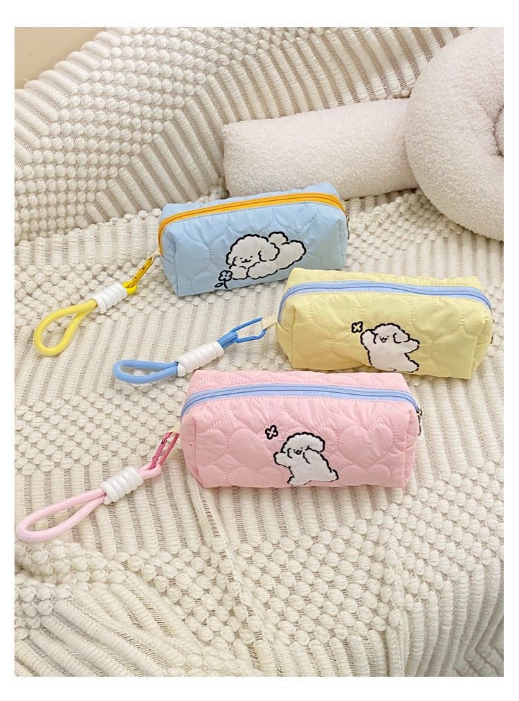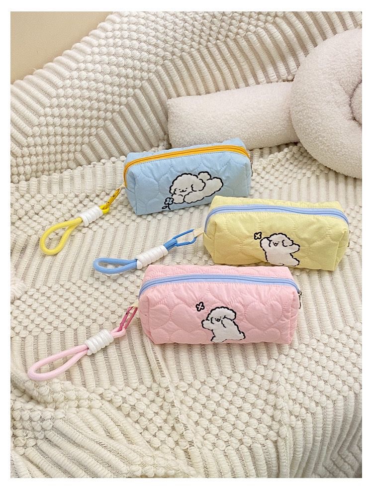 라인 강아지 연필 케이스 대용량 귀여운 소녀 심장 중학교 학생 연필 케이스 휴대용 강아지 인쇄 연필 가방