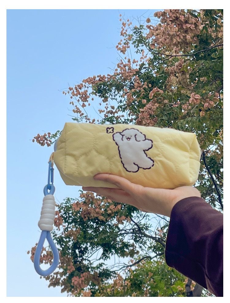 라인 강아지 연필 케이스 대용량 귀여운 소녀 심장 중학교 학생 연필 케이스 휴대용 강아지 인쇄 연필 가방스토어 가기