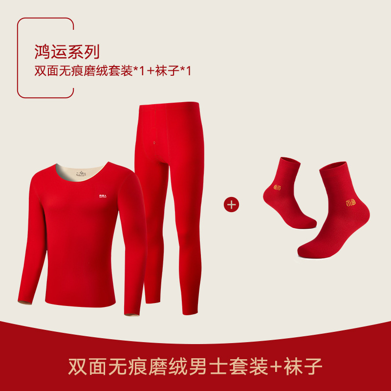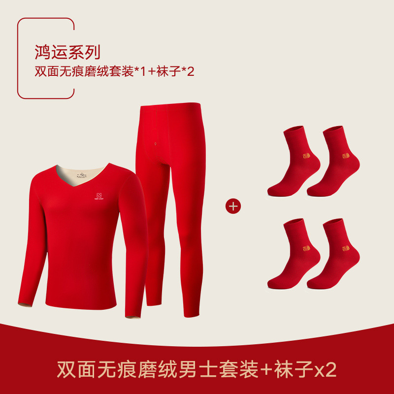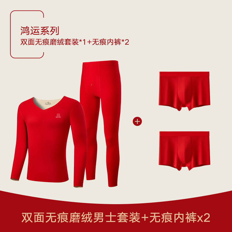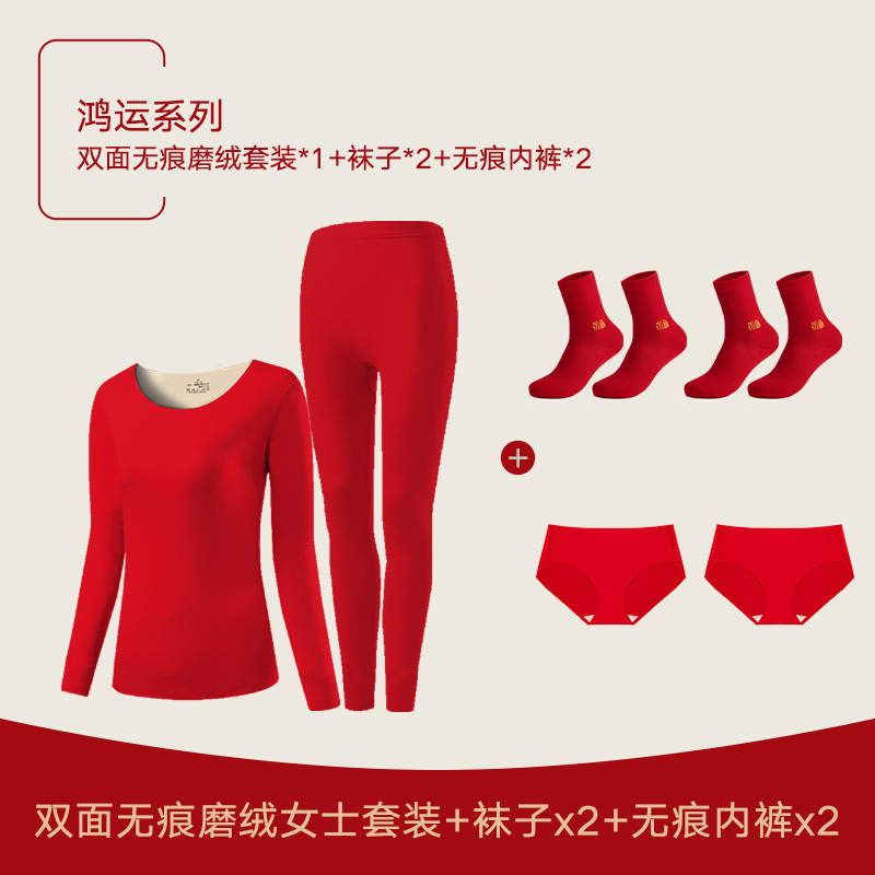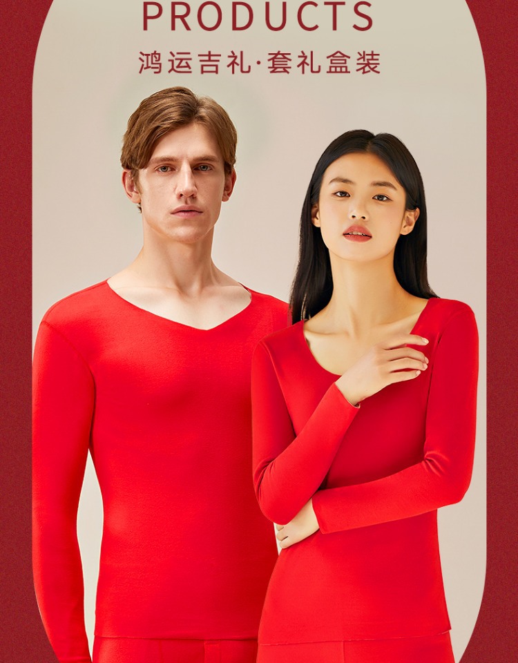 밝은 붉은 출생 년 결혼식 남자의 열 속옷 가을 옷 긴 바지 세트 원활한 여성 용 년스토어 가기