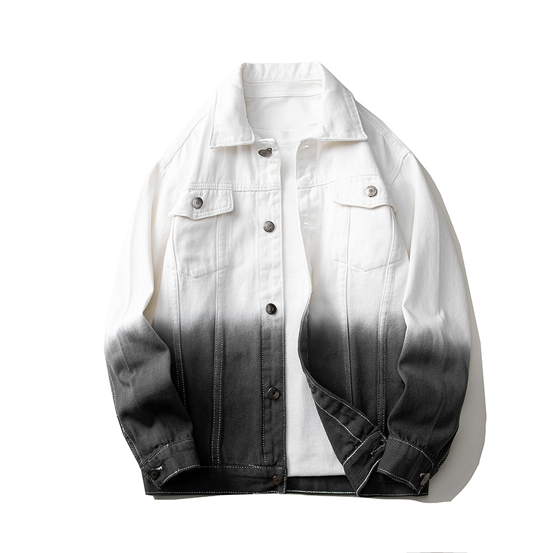 컬러 매칭 그라디언트 데님 코트 남자 2024 봄 새로운 청소년 긴팔 데님 의류 일본 잘 생긴 남자 재킷스토어 가기