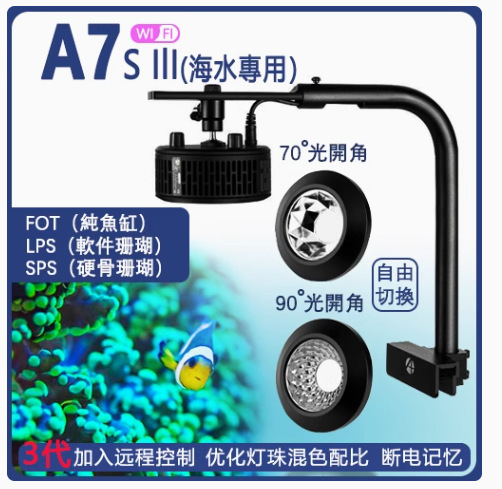 A7SIII 바닷물 산호 램프 LED 램프 전체 스펙트럼 100W 바다 탱크 작은 마법 램프 360 둥근 바다 탱크 램프 앱