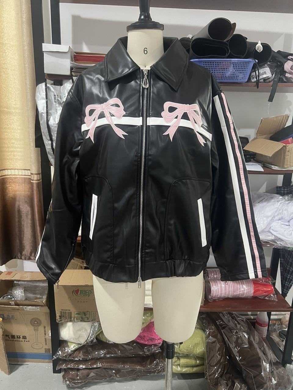 유럽과 미국의 국경 2024 봄 여성 가죽 의류 독특한 거리 달콤한 쿨 활 PU 오토바이 가죽 자켓 코트스토어 가기