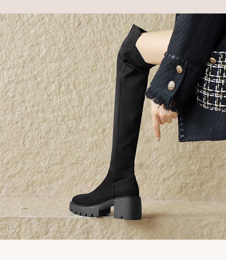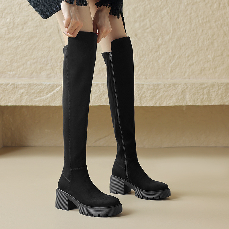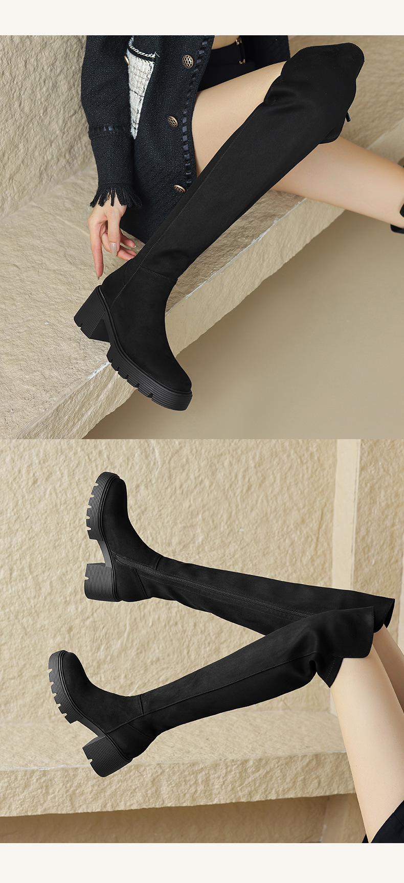 하이힐 부츠 여성 부츠 2023 가을 새로운 작은 검은 두꺼운 바닥 스티칭 슬리밍 오버 더-무릎 부츠