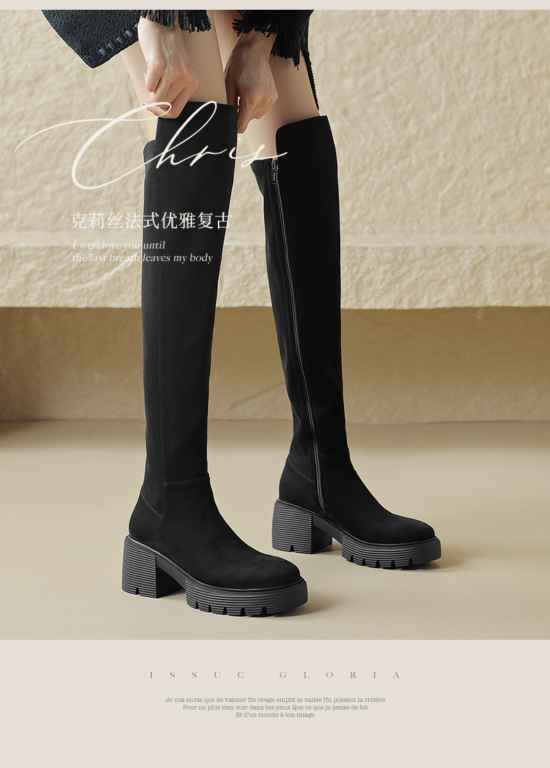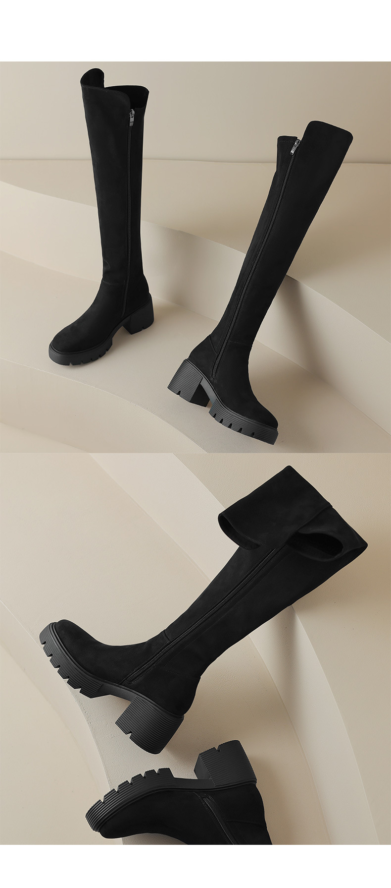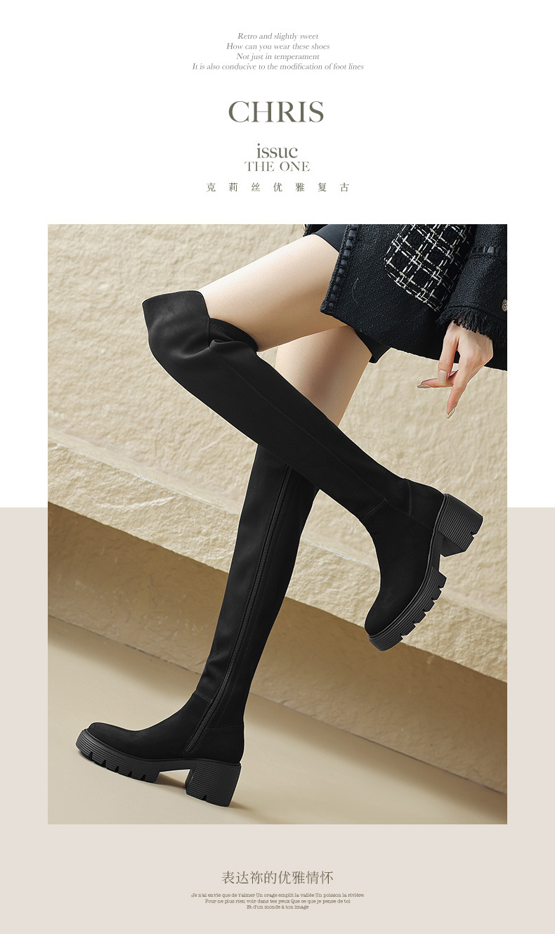하이힐 부츠 여성 부츠 2023 가을 새로운 작은 검은 두꺼운 바닥 스티칭 슬리밍 오버 더-무릎 부츠스토어 가기