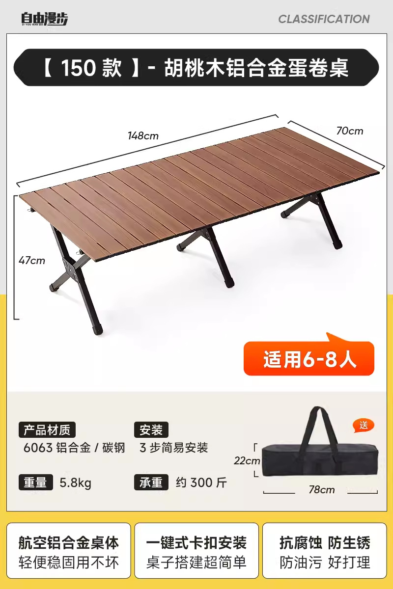 • [6-8 명이 추천] [테이블 플레이트 알루미늄 합금] 150cm 호두 곡물 (저장 가방 보내기)