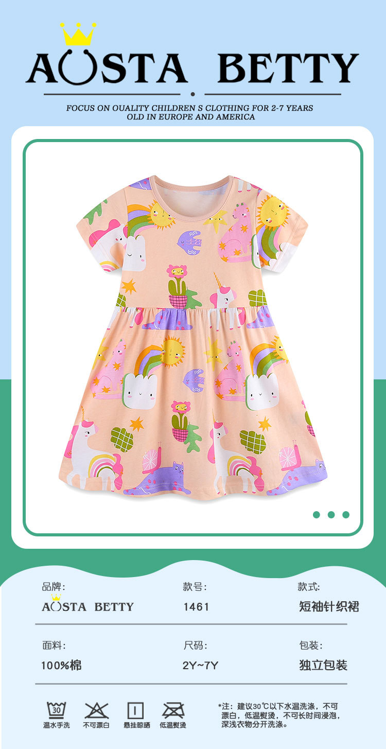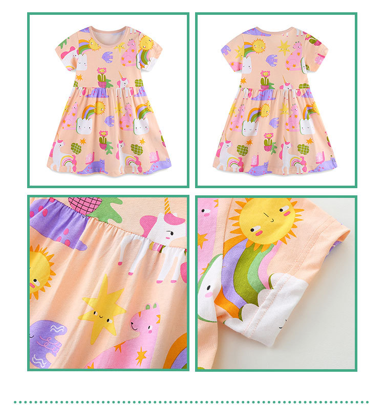 국경을 넘는 공급원 소녀 드레스 유럽 및 미국 스타일 어린이 만화 프린트 공주 드레스 2025 여름 신상품 아동 드레스스토어 가기