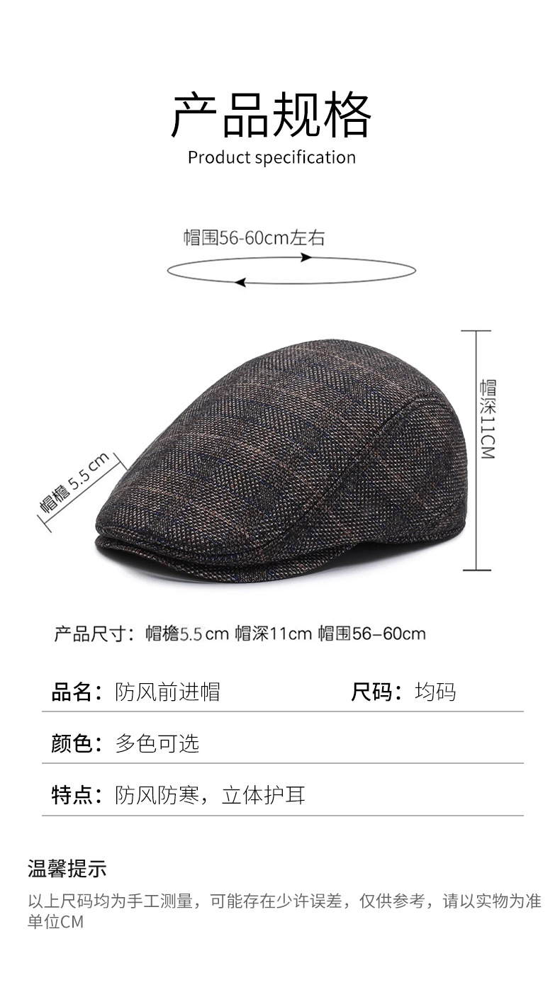 겨울 모자 남성 중년 및 노인 최고점 모자 중년 남성 포워드 모자 복고풍 격자 무늬 따뜻한 베레모