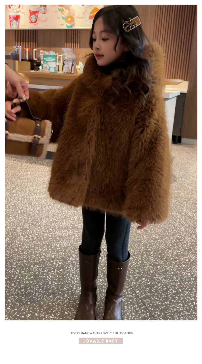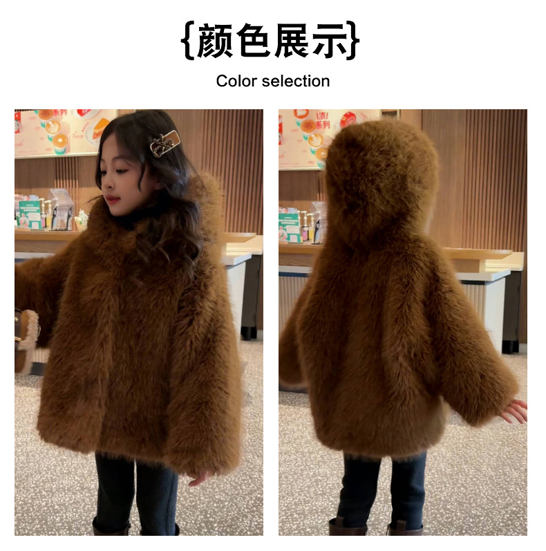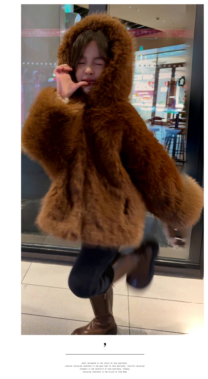 소녀 Maillard 스타일 가짜 모피 코트 2023 새로운 가을과 겨울 어린이 겨울 옷 모자 클립 코튼 코트 패션