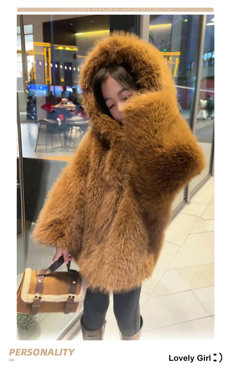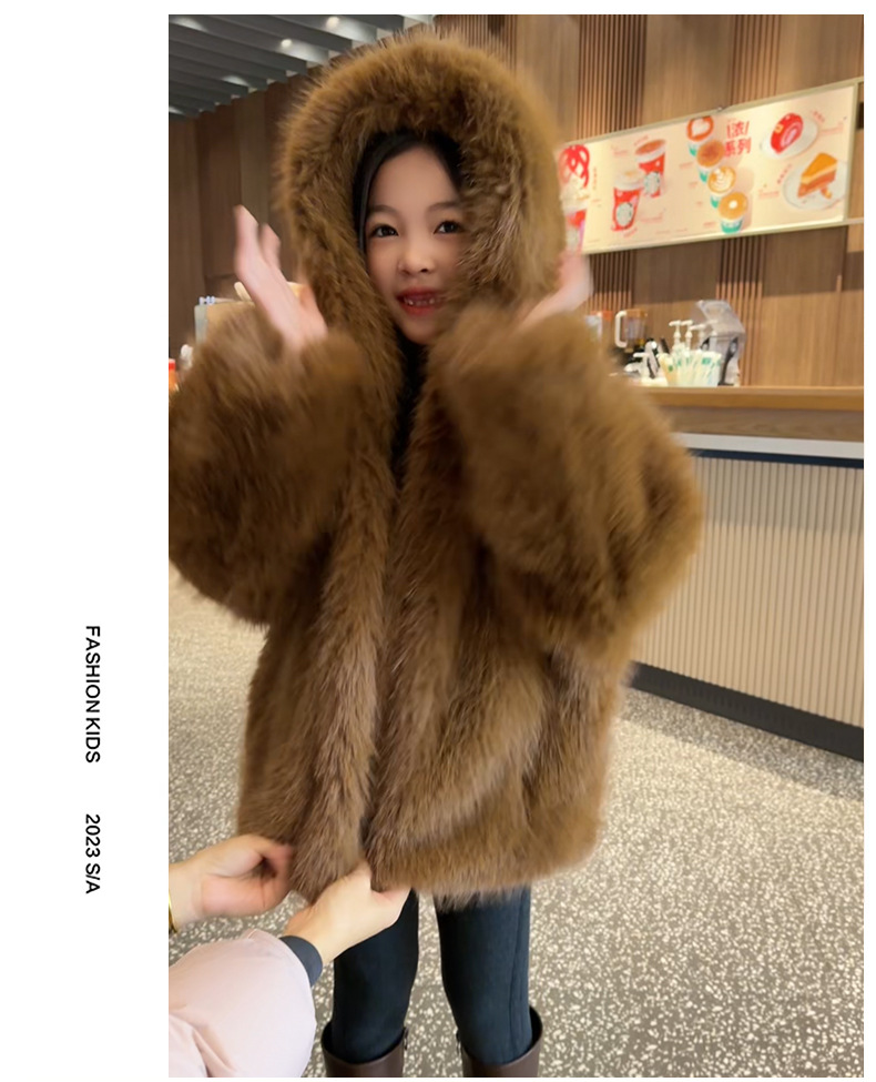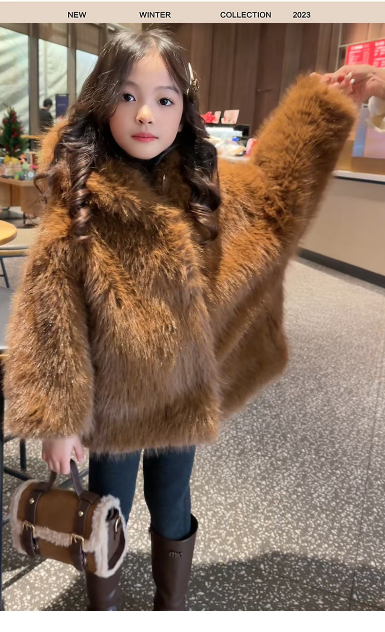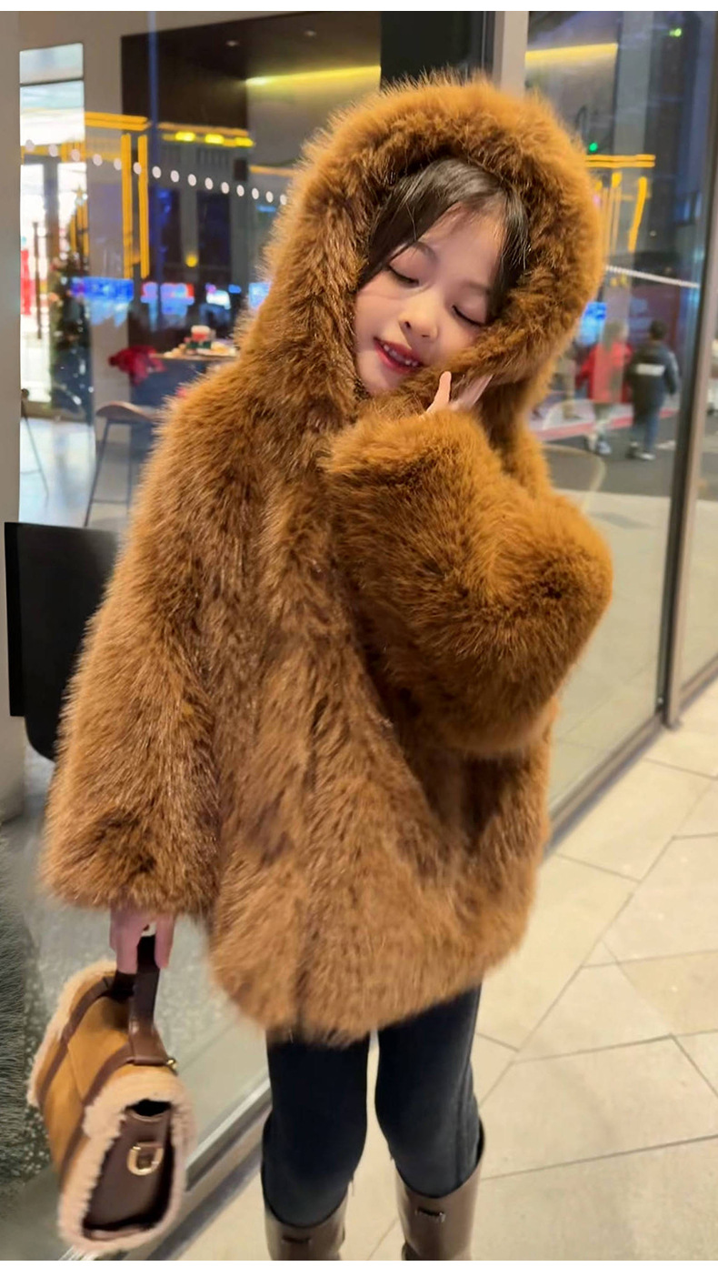 소녀 Maillard 스타일 가짜 모피 코트 2023 새로운 가을과 겨울 어린이 겨울 옷 모자 클립 코튼 코트 패션스토어 가기