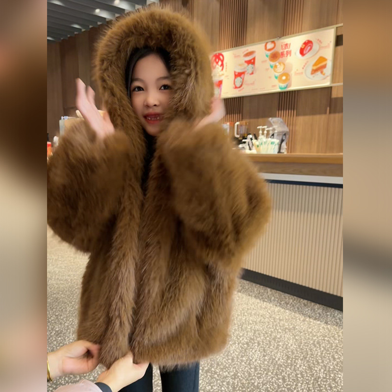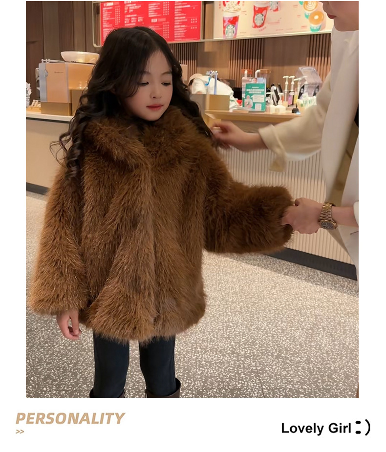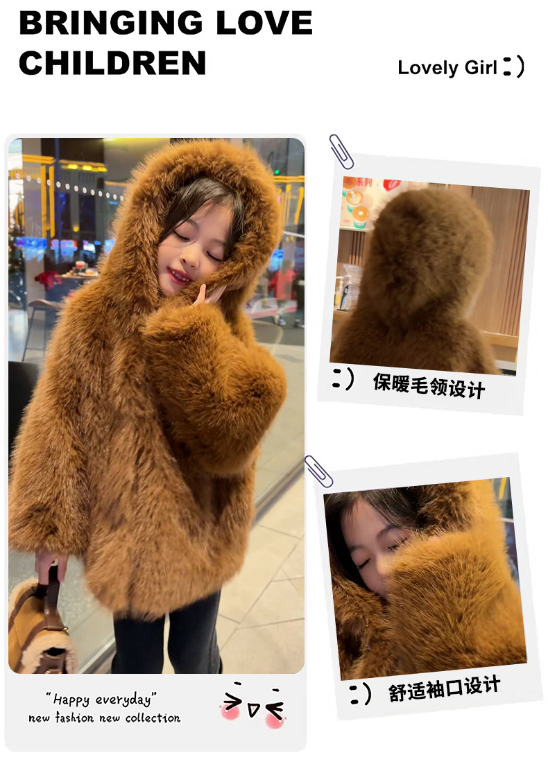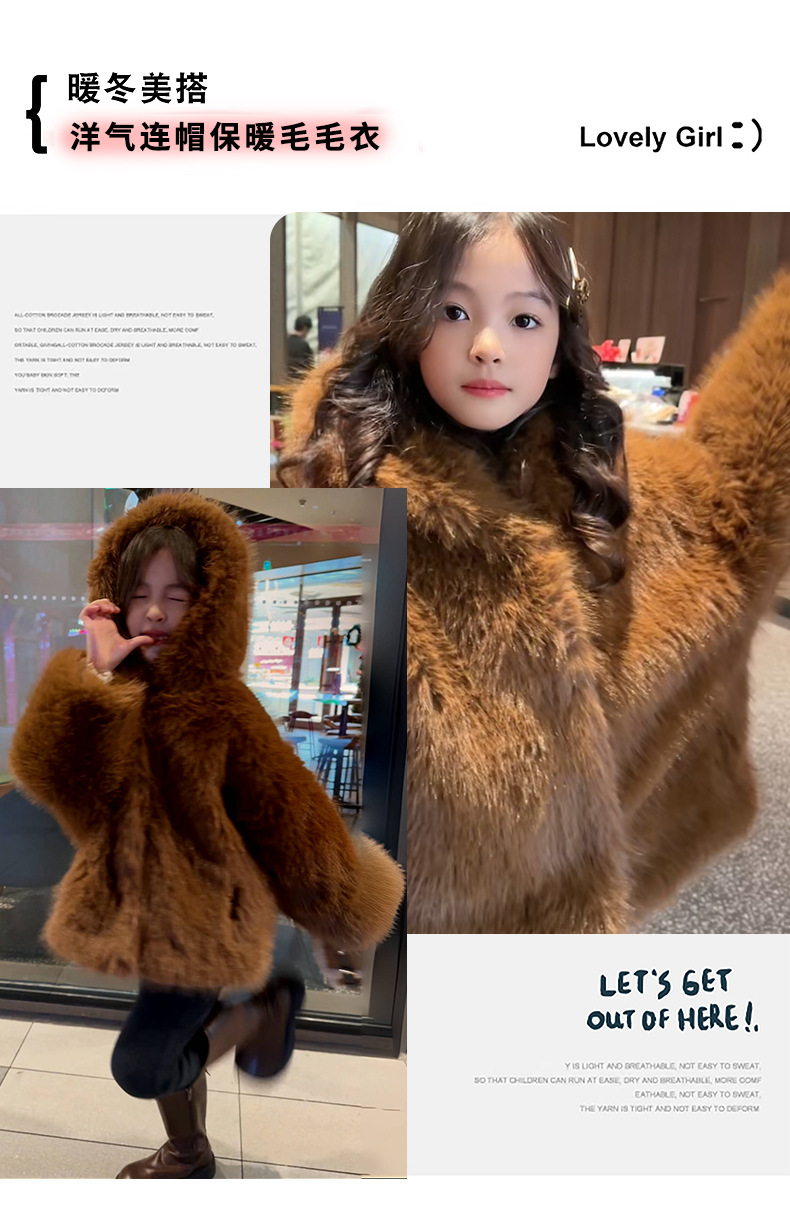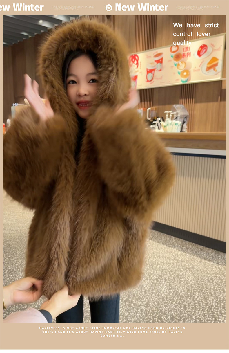소녀 Maillard 스타일 가짜 모피 코트 2023 새로운 가을과 겨울 어린이 겨울 옷 모자 클립 코튼 코트 패션스토어 가기