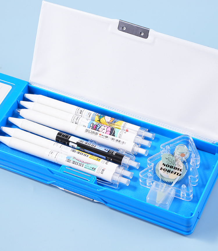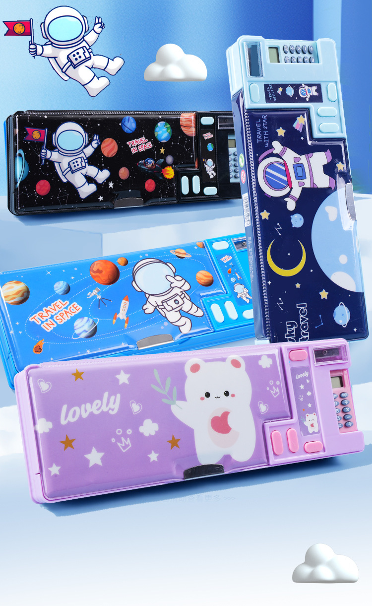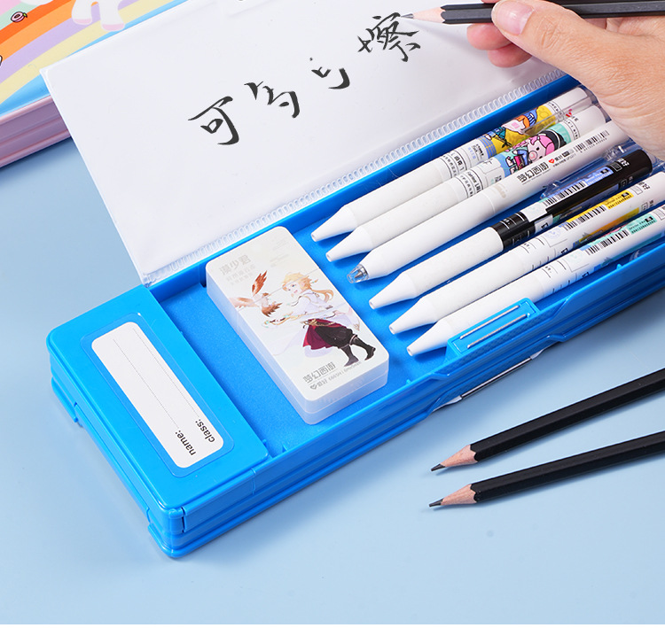 초등학생 다기능 문구 상자 대용량 더블 레이어 컴퓨터 펜 케이스 더블 오픈 연필 케이스 크로스 테두리 인쇄 가능한 패턴