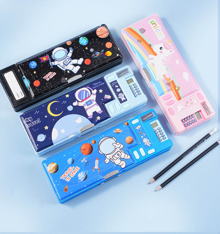 초등학생 다기능 문구 상자 대용량 더블 레이어 컴퓨터 펜 케이스 더블 오픈 연필 케이스 크로스 테두리 인쇄 가능한 패턴스토어 가기