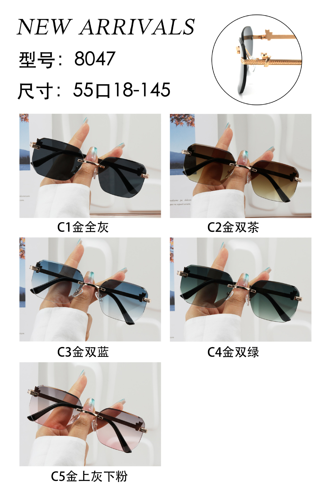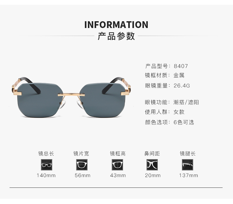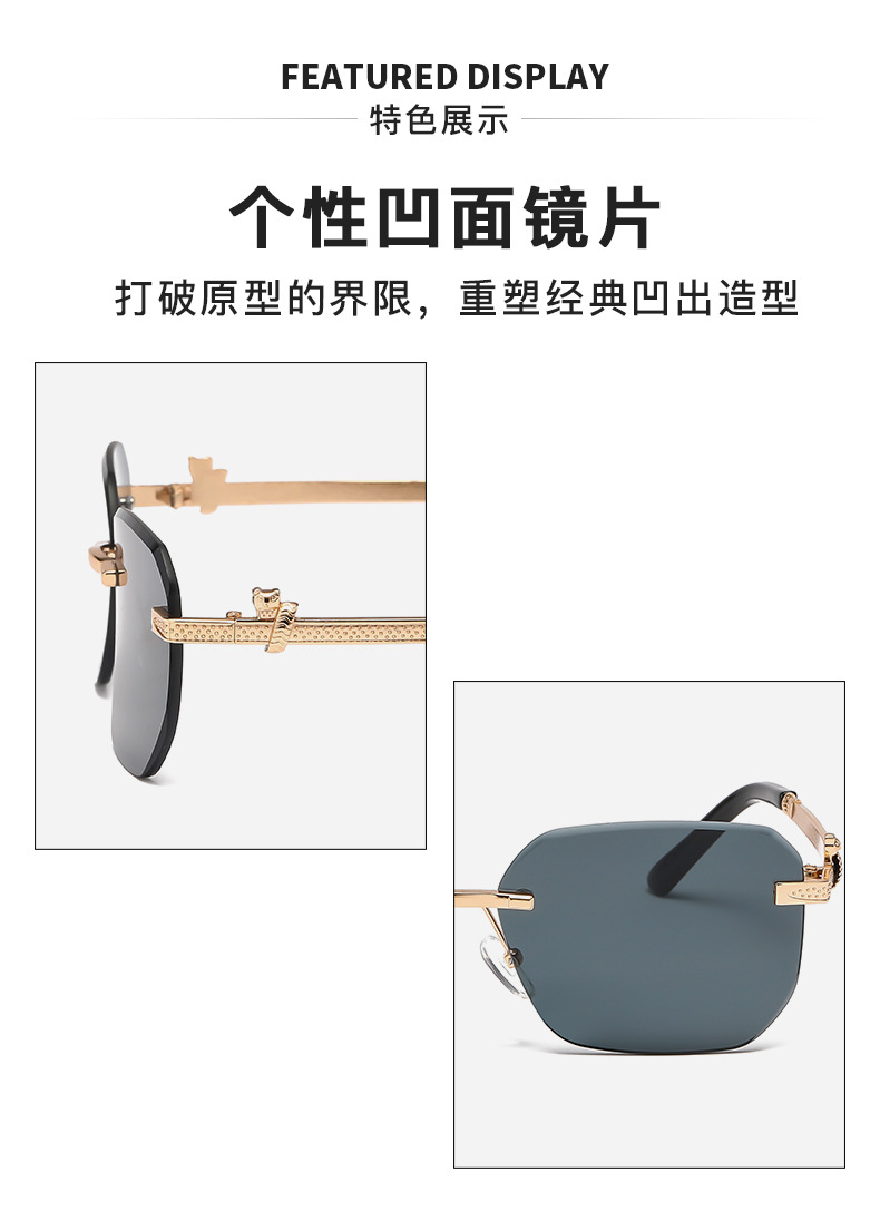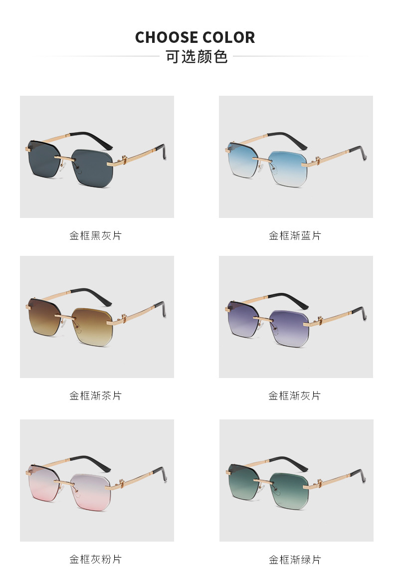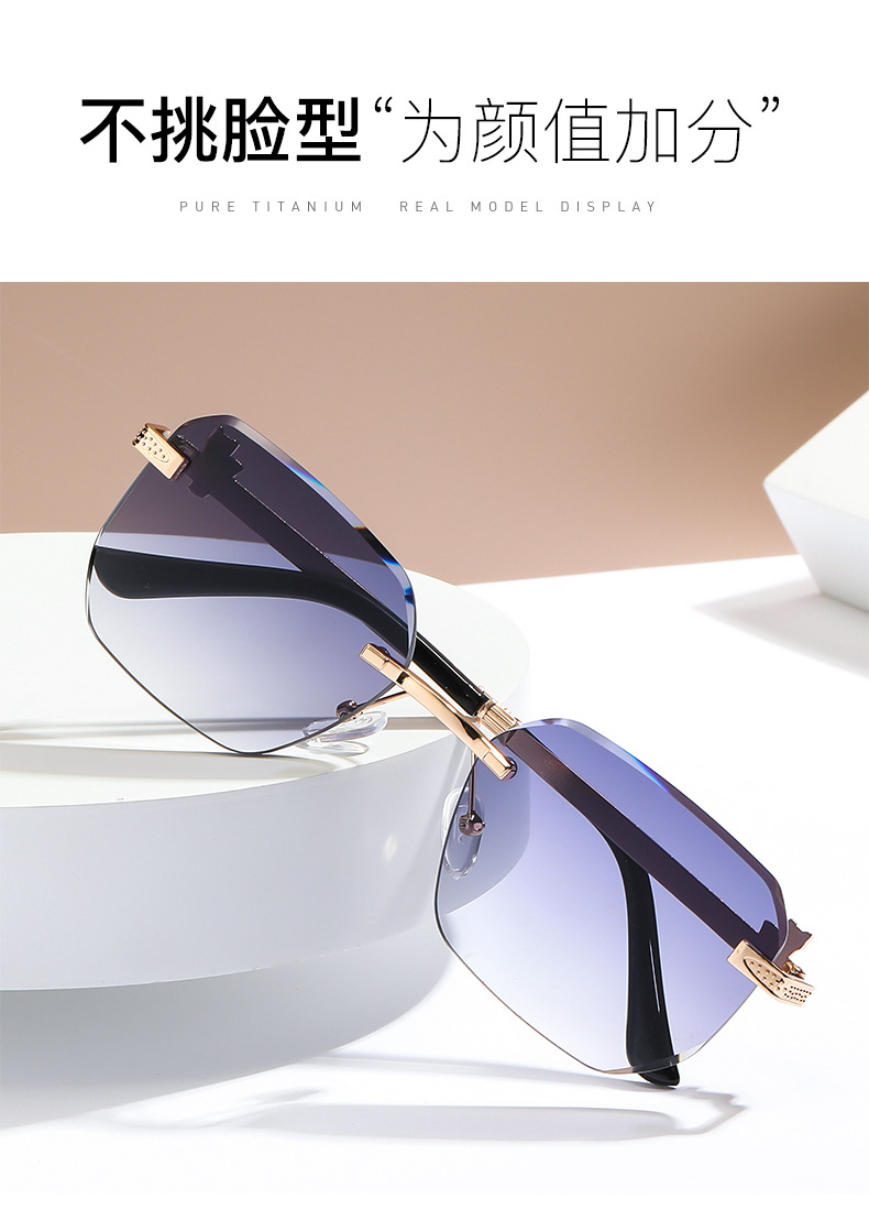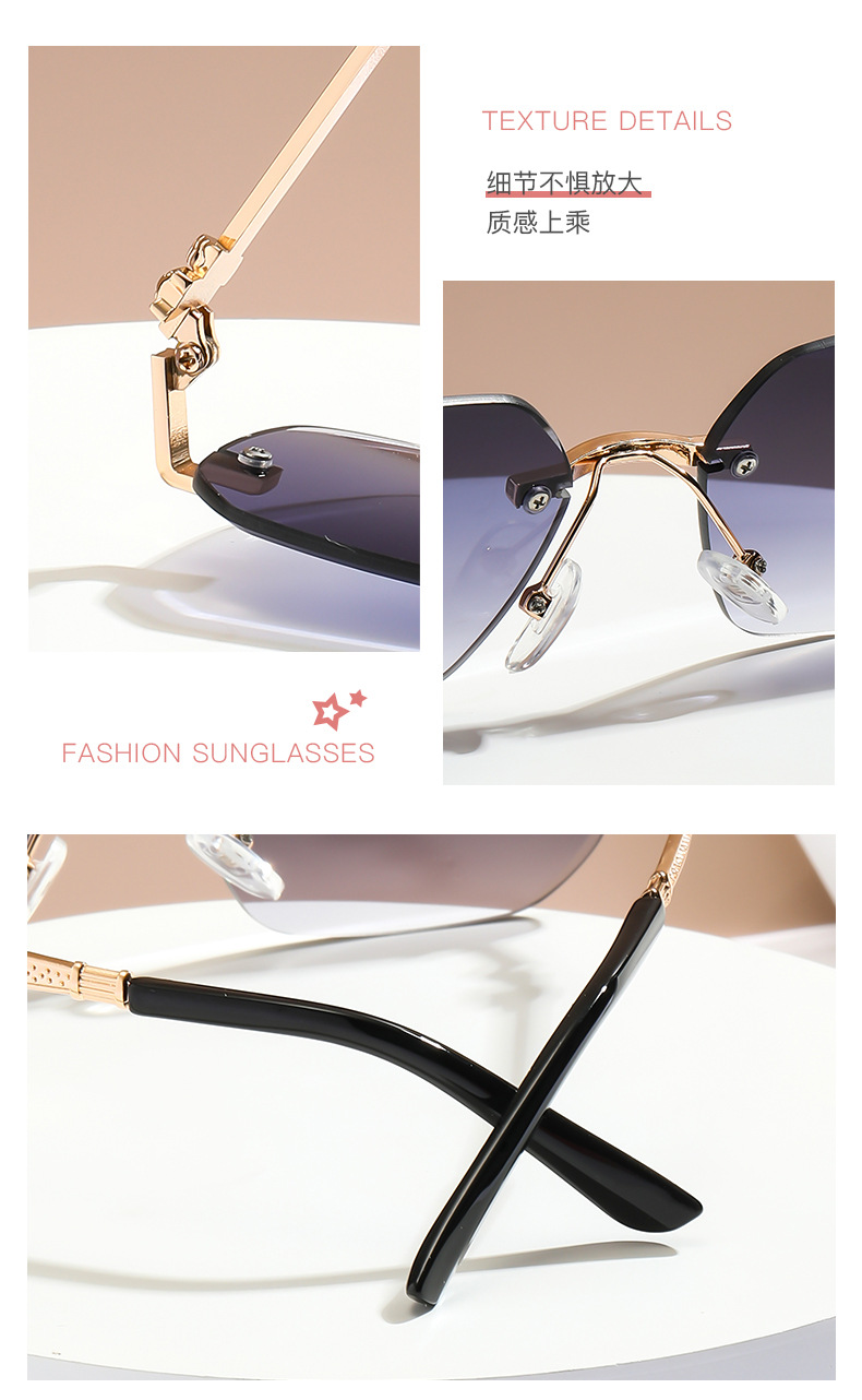 패셔너블한 무테 선글라스, 남녀공용 트렌디한 그라데이션 컬러, 반곡면 자외선 차단 선글라스, 가벼운 럭셔리 선글라스스토어 가기