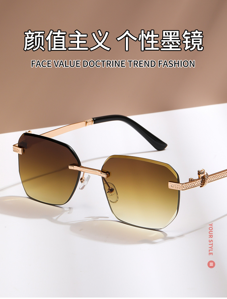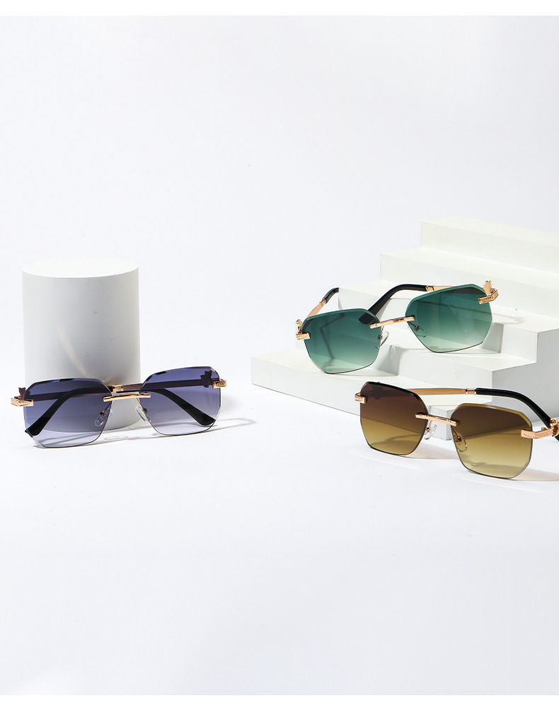 패셔너블한 무테 선글라스, 남녀공용 트렌디한 그라데이션 컬러, 반곡면 자외선 차단 선글라스, 가벼운 럭셔리 선글라스
