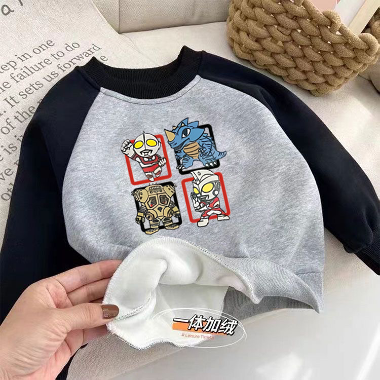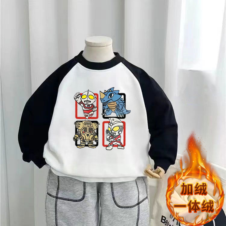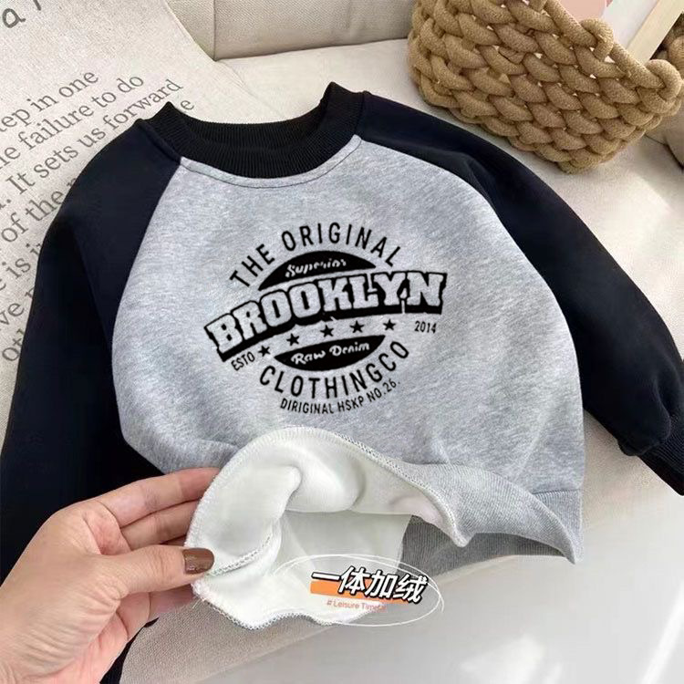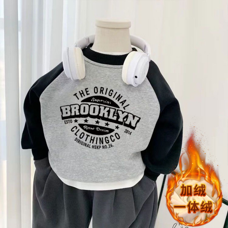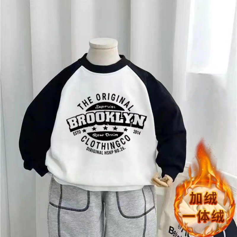 소년의 원피스 벨벳 스웨터 2023 겨울 새로운 어린이 둥근 목 풀오버 탑 아기 소년의 슈퍼 소프트 벨벳 외부 드레싱스토어 가기