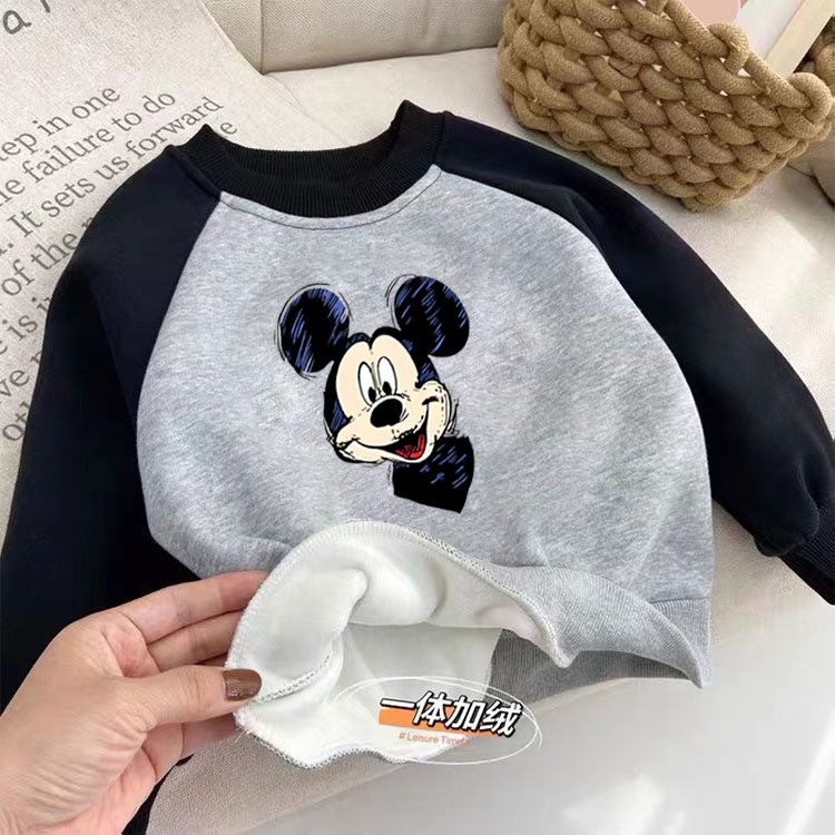 소년의 원피스 벨벳 스웨터 2023 겨울 새로운 어린이 둥근 목 풀오버 탑 아기 소년의 슈퍼 소프트 벨벳 외부 드레싱
