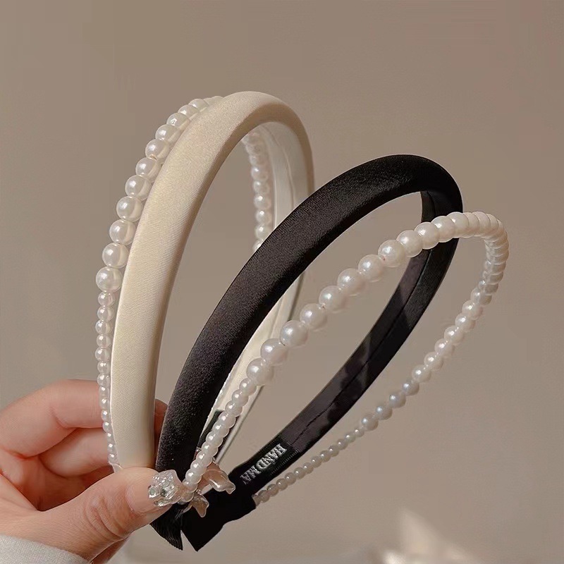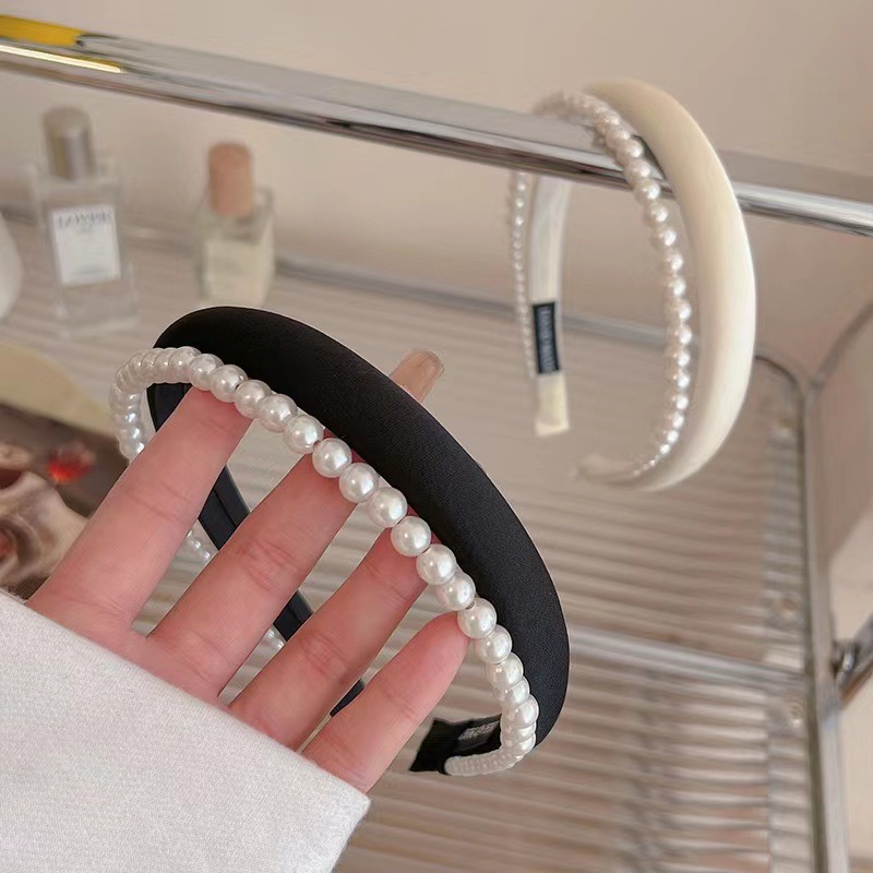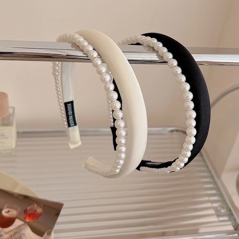 진주 높은 두개골 탑 머리띠 2023 새로운 봄과 여름 고급 얼굴 씻기 머리 머리띠 더블 레이어 프랑스 머리 액세서리스토어 가기