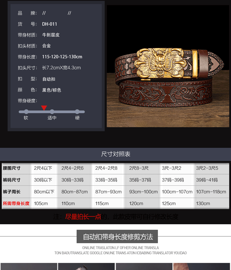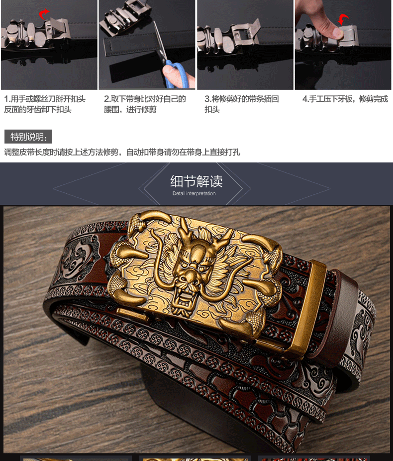 공격적인 탕 잔디 패턴 새겨진 남성 자동 모방 구리 버클 벨트 독특한 라이브 핫 판매 6 발톱 드래곤 양각 벨트스토어 가기