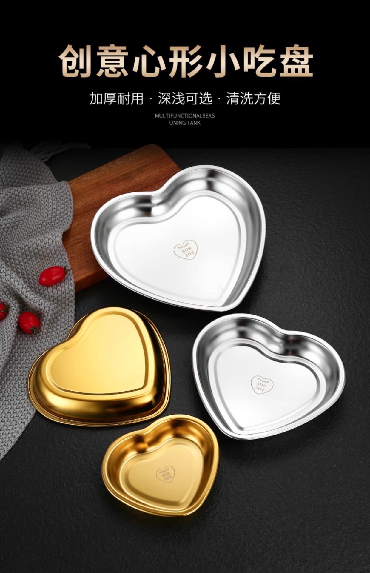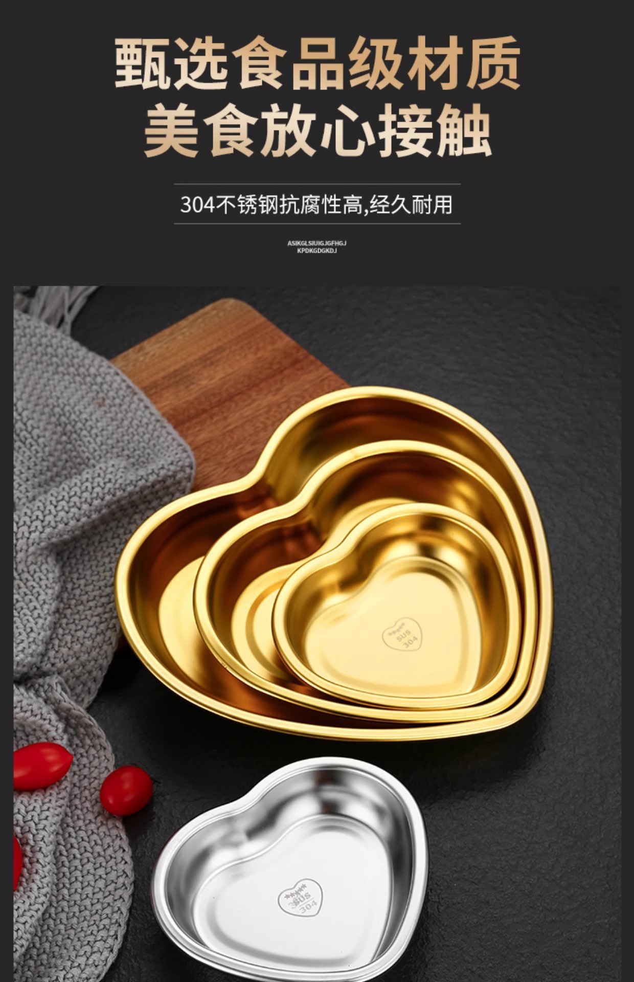 304 한국식 스테인레스 스틸 하트 모양의 스낵 플레이트 골든 플레이트 크리에이티브 스낵 과일 살라 플레이트 바베큐 플레이트스토어 가기