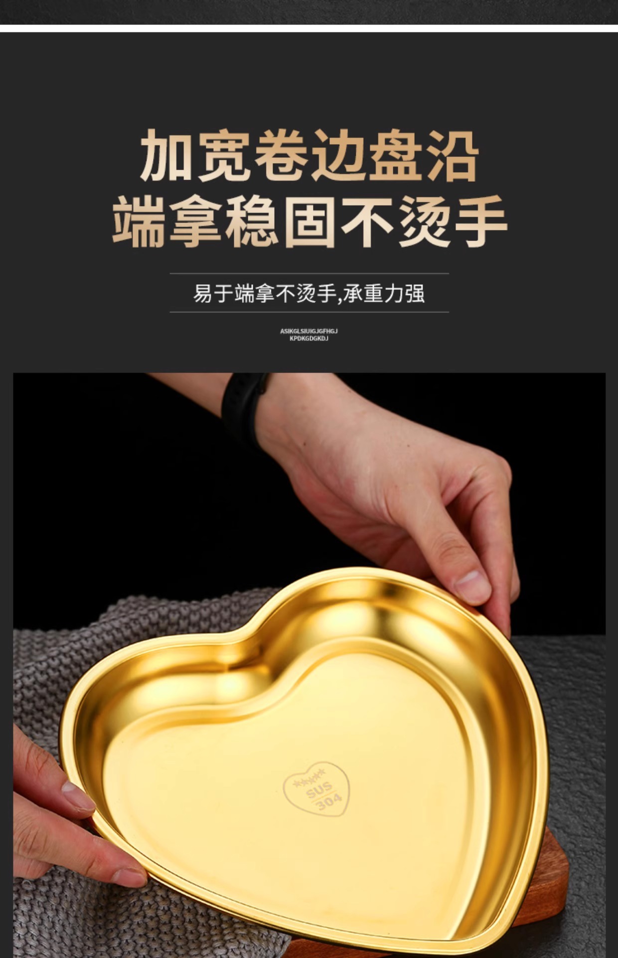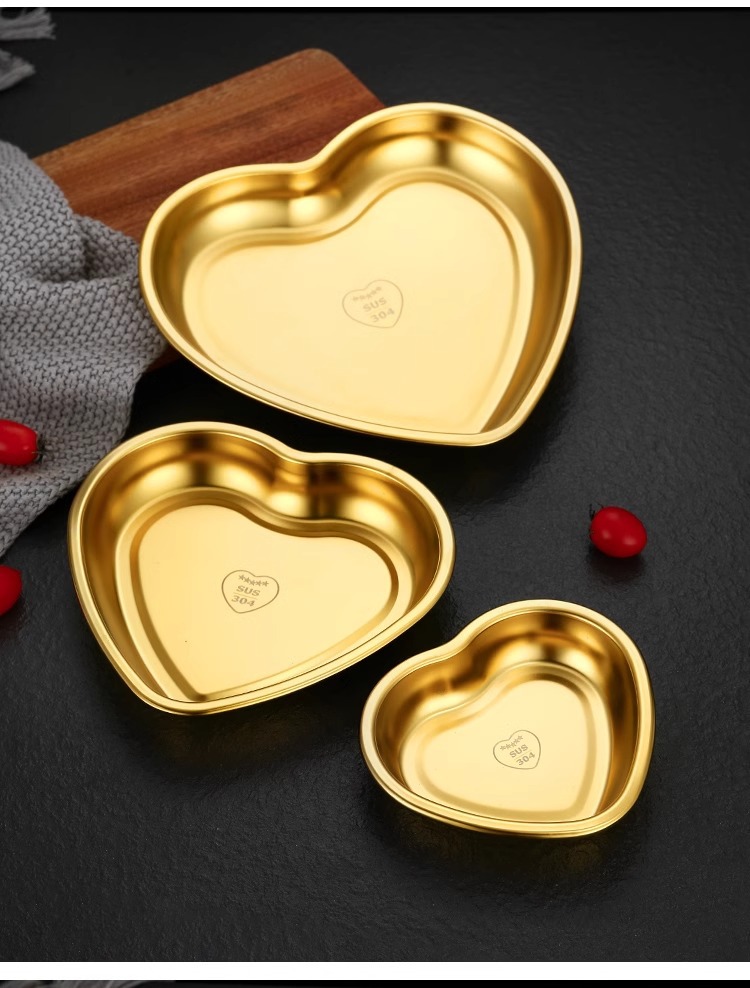 304 한국식 스테인레스 스틸 하트 모양의 스낵 플레이트 골든 플레이트 크리에이티브 스낵 과일 살라 플레이트 바베큐 플레이트