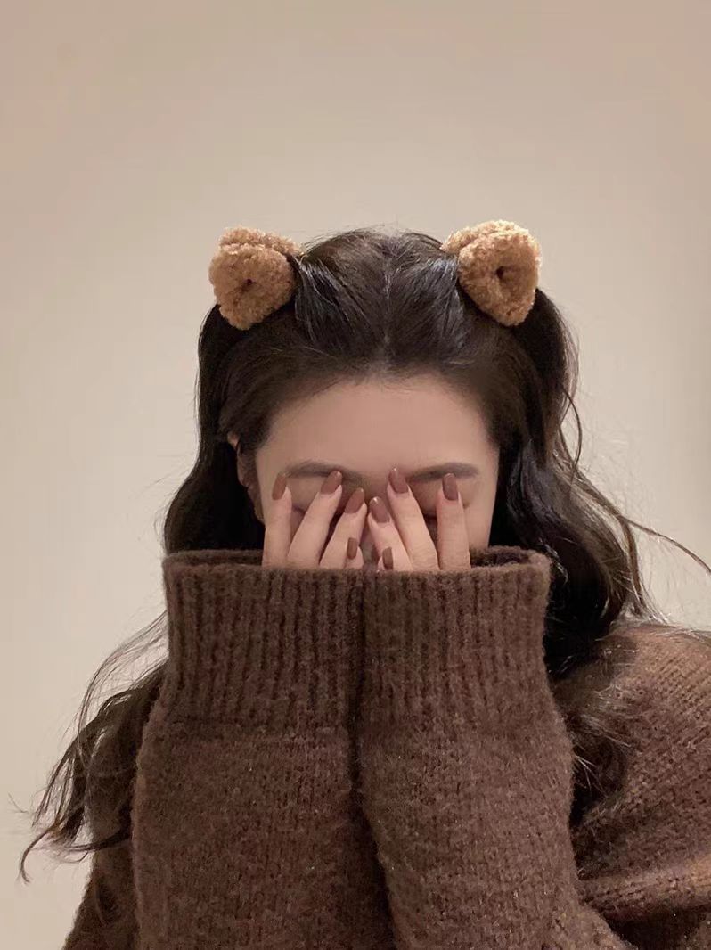 • 고양이 귀 머리핀 싱글 다크 브라운