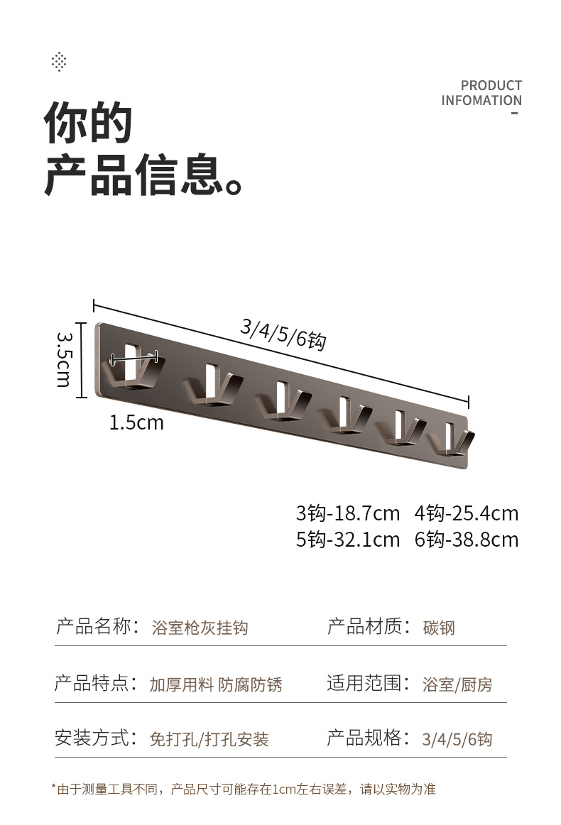 • 구멍이없는 총 회색 도어 리어 후크 3 후크