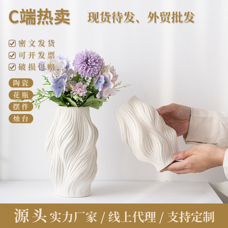 북유럽 스타일의 무광 세라믹 꽃병 장식품 수경재배 꽃병 장식품 가정용 장식품 해외 동일 스타일 도매스토어 가기