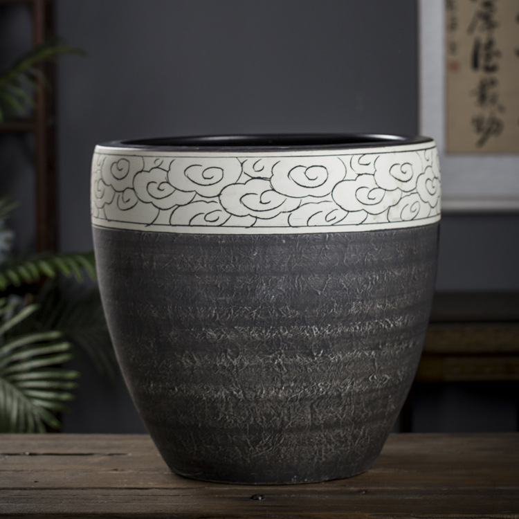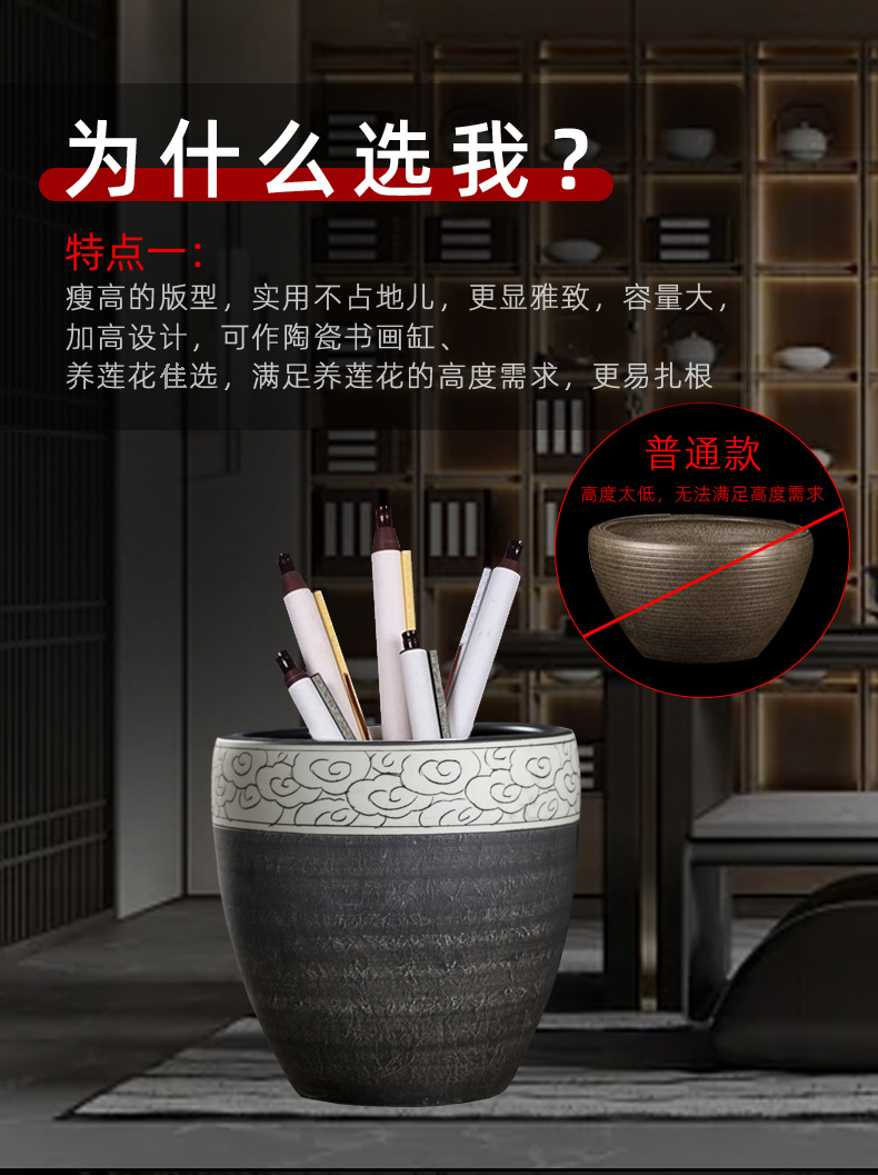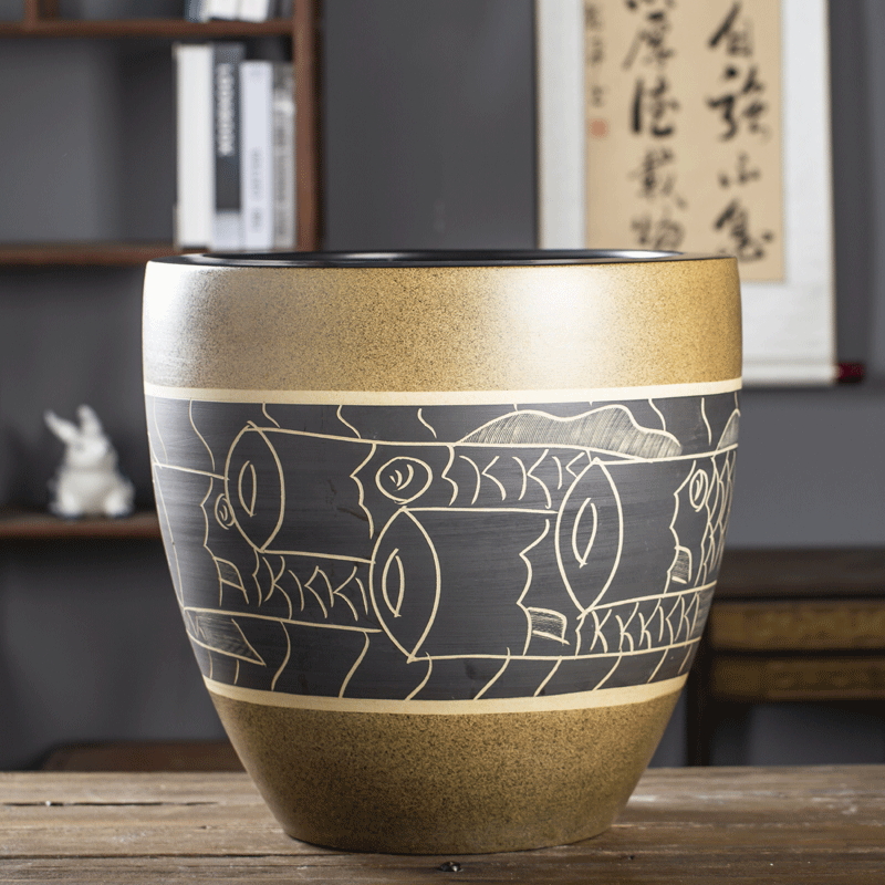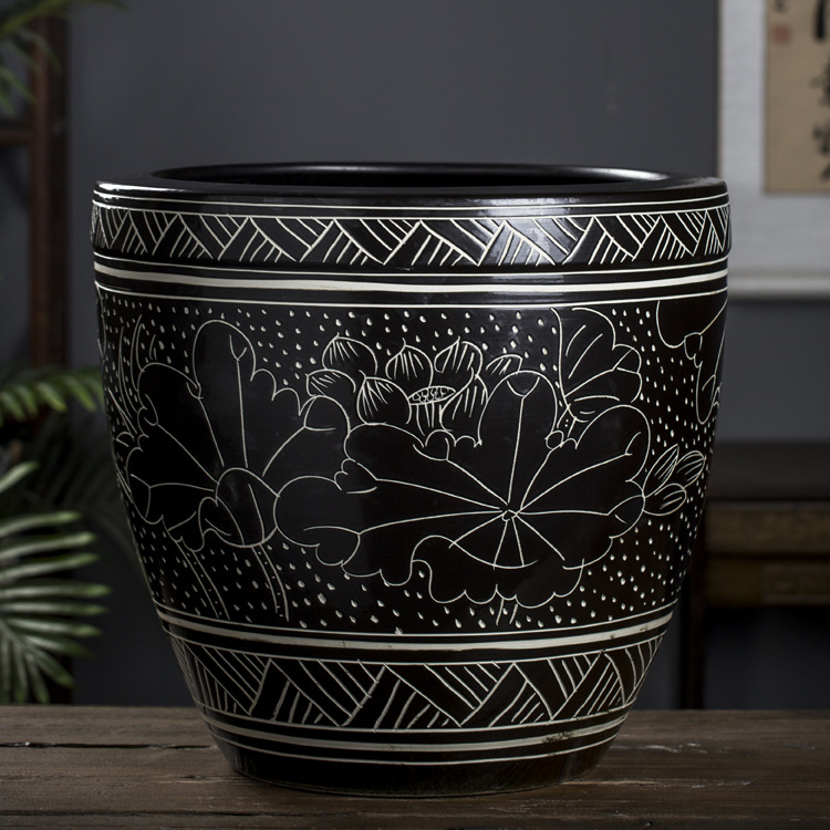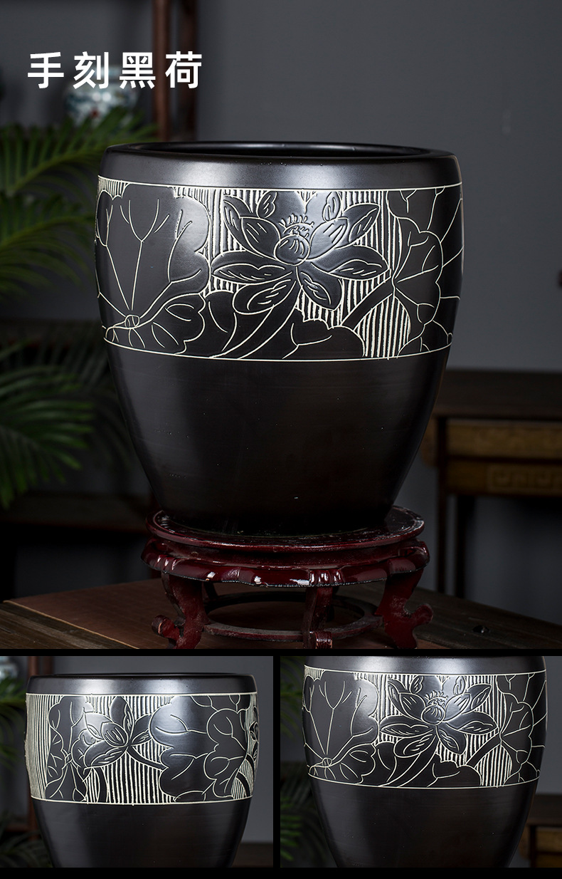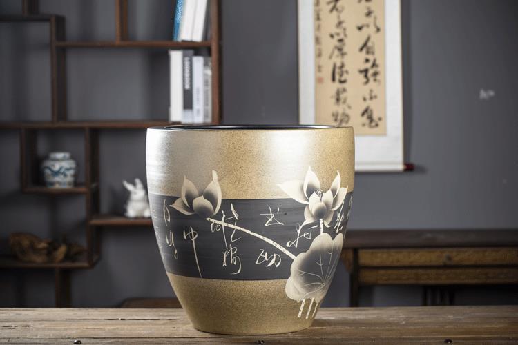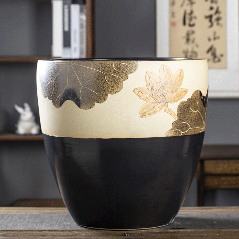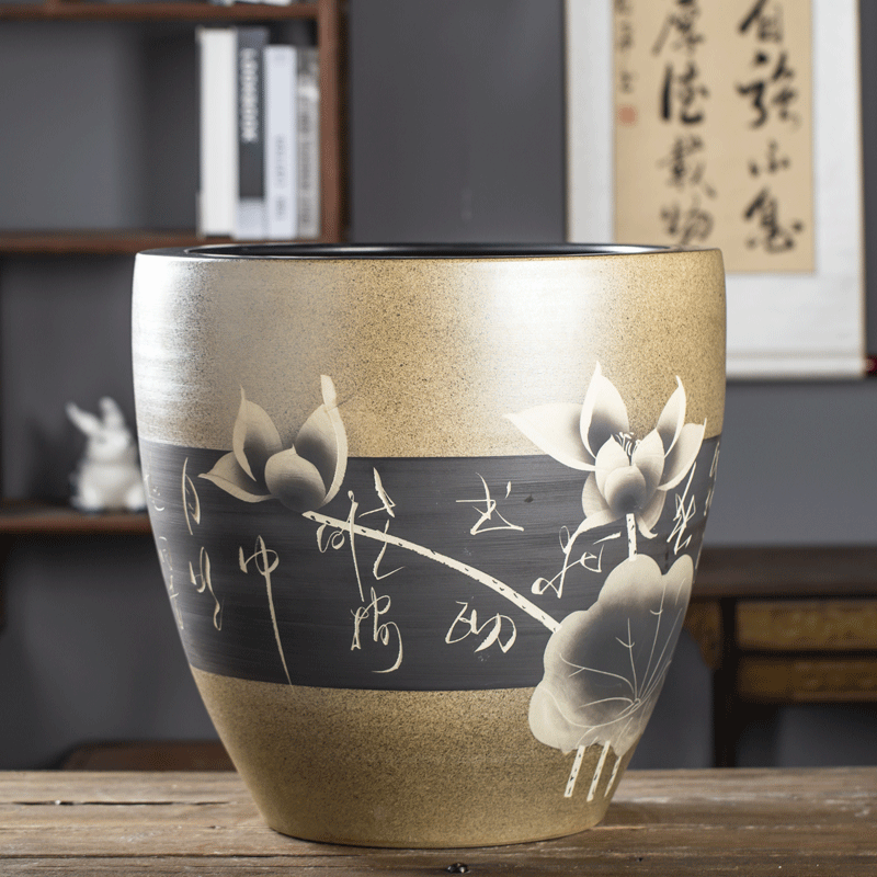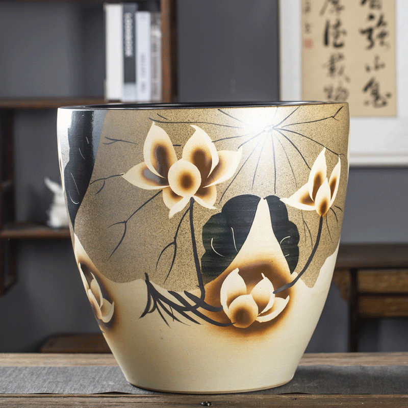Jingdezhen 세라믹 어항 대형 연꽃 수련 물 탱크 안뜰 거실 장식 그림 및 서예 스크롤 탱크