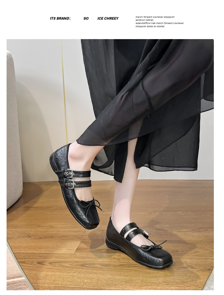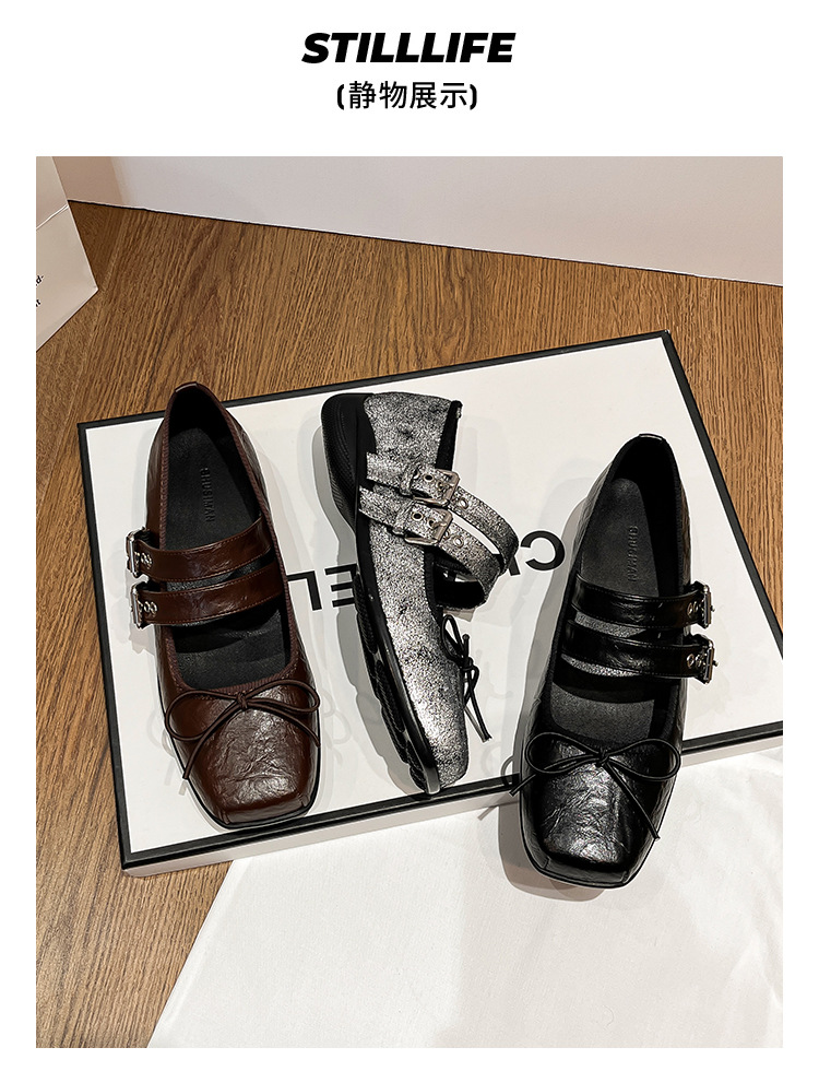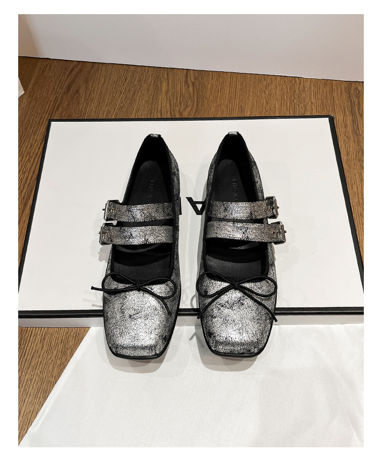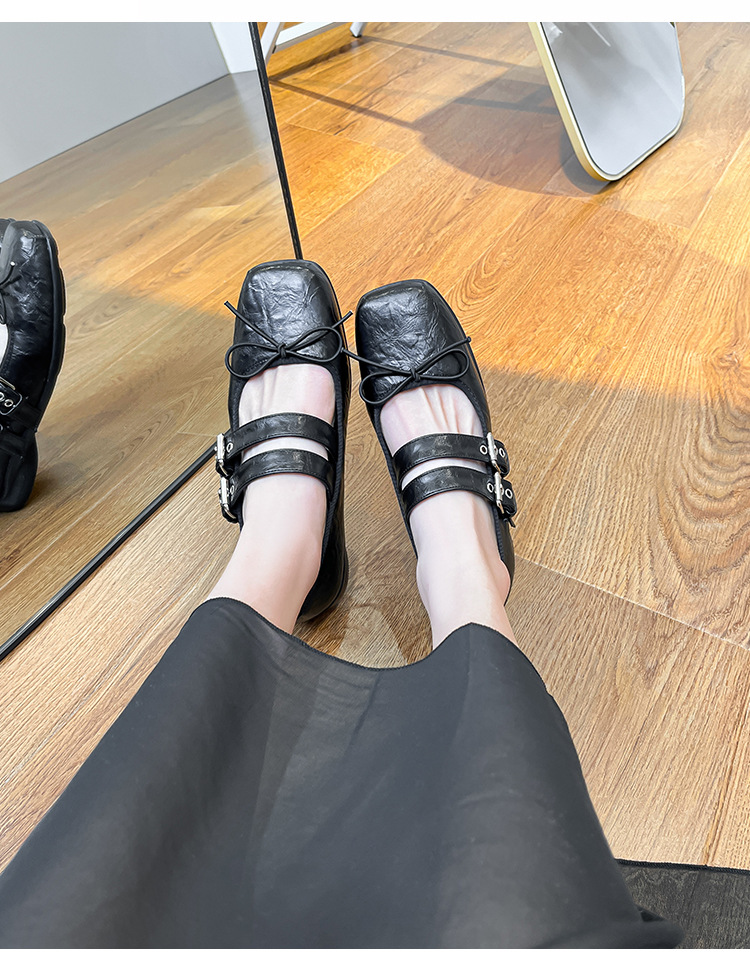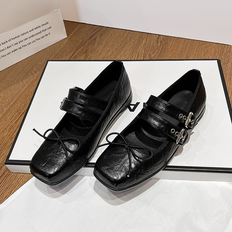 2025 이른 봄 새로운 플랫 바닥 얕은 입 보우 신발 틈새 깨진 오래된 발레 메리 제인 신발 여성용