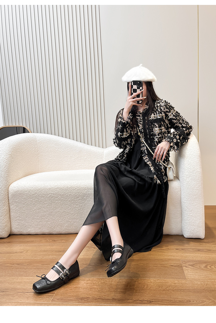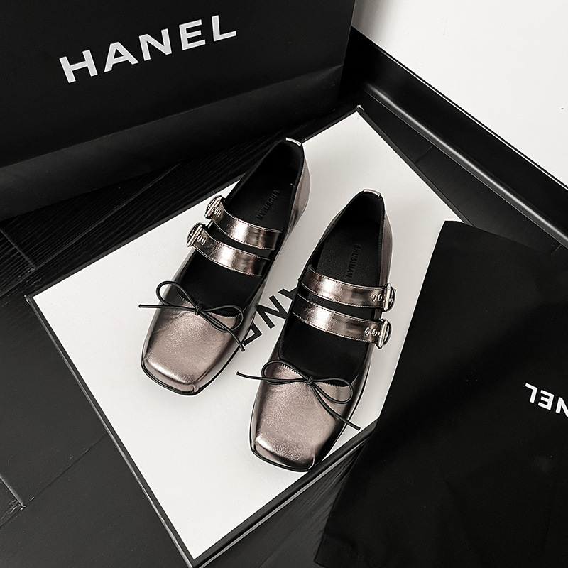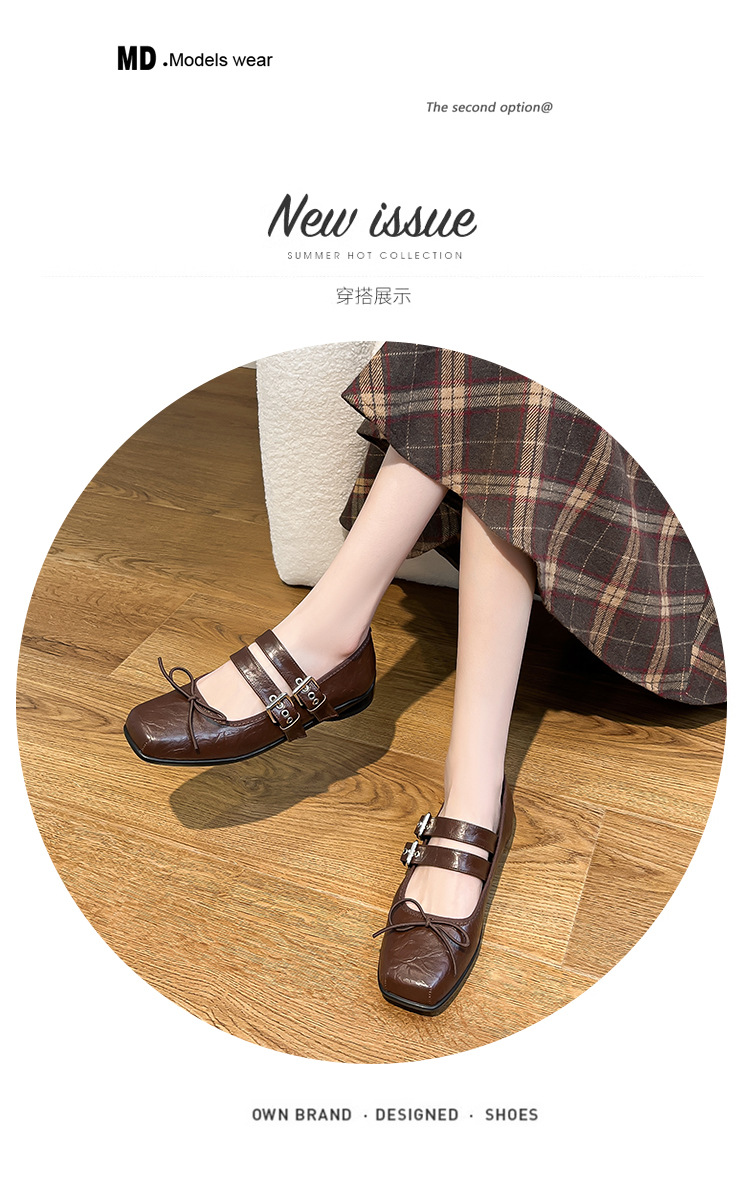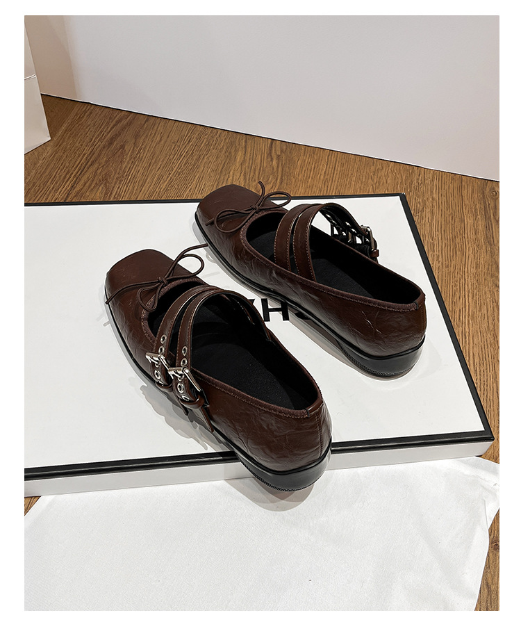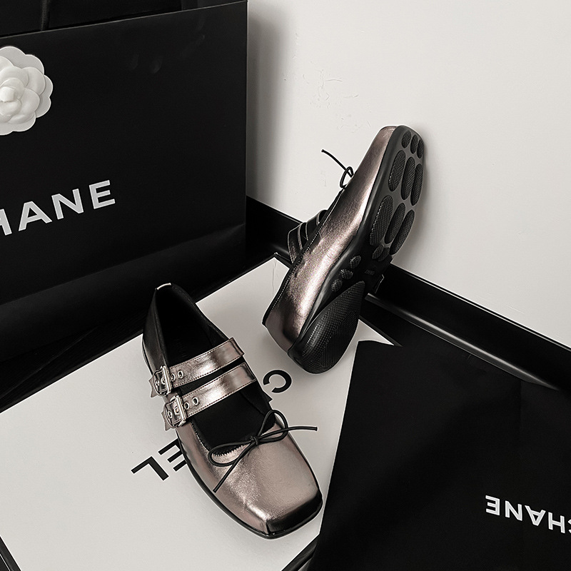 2025 이른 봄 새로운 플랫 바닥 얕은 입 보우 신발 틈새 깨진 오래된 발레 메리 제인 신발 여성용