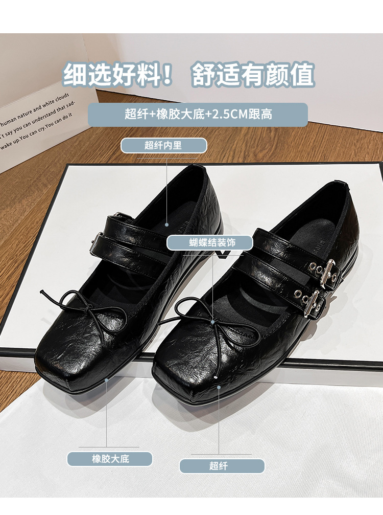 2025 이른 봄 새로운 플랫 바닥 얕은 입 보우 신발 틈새 깨진 오래된 발레 메리 제인 신발 여성용스토어 가기