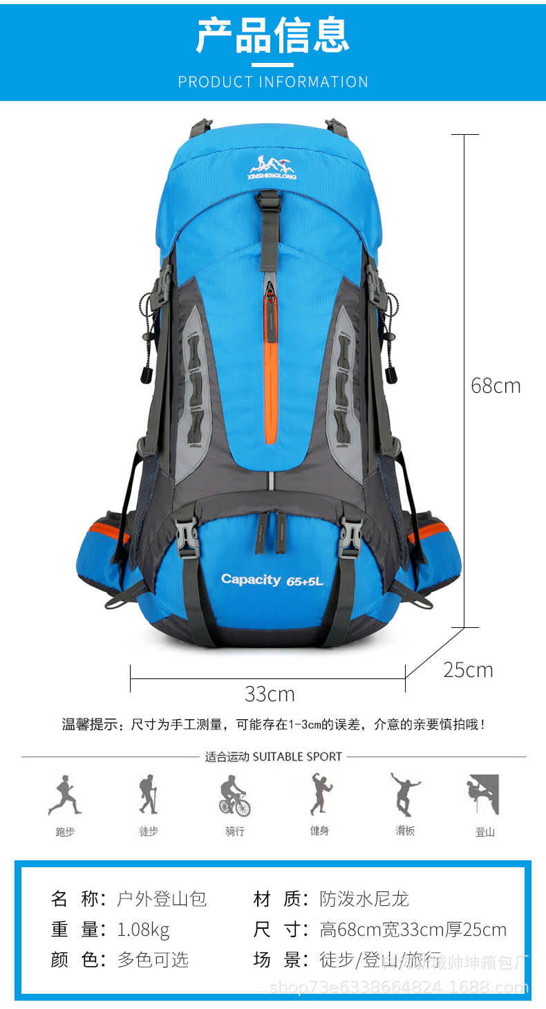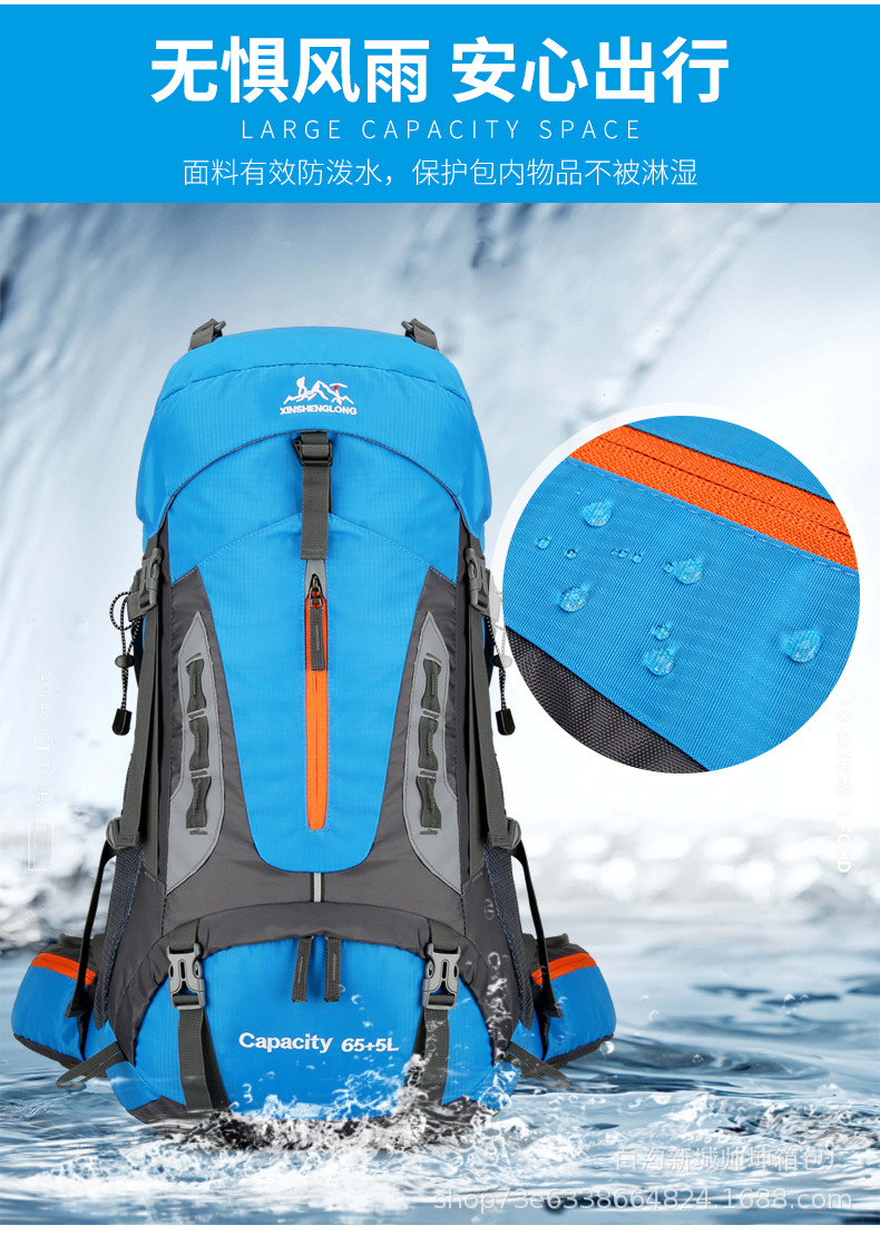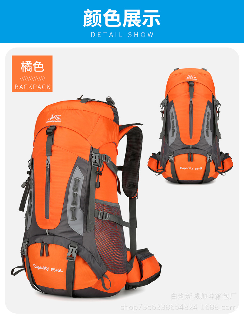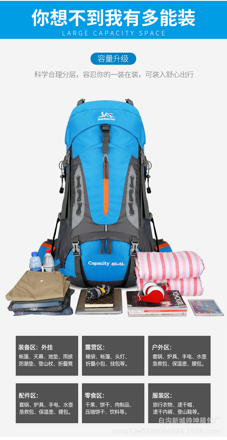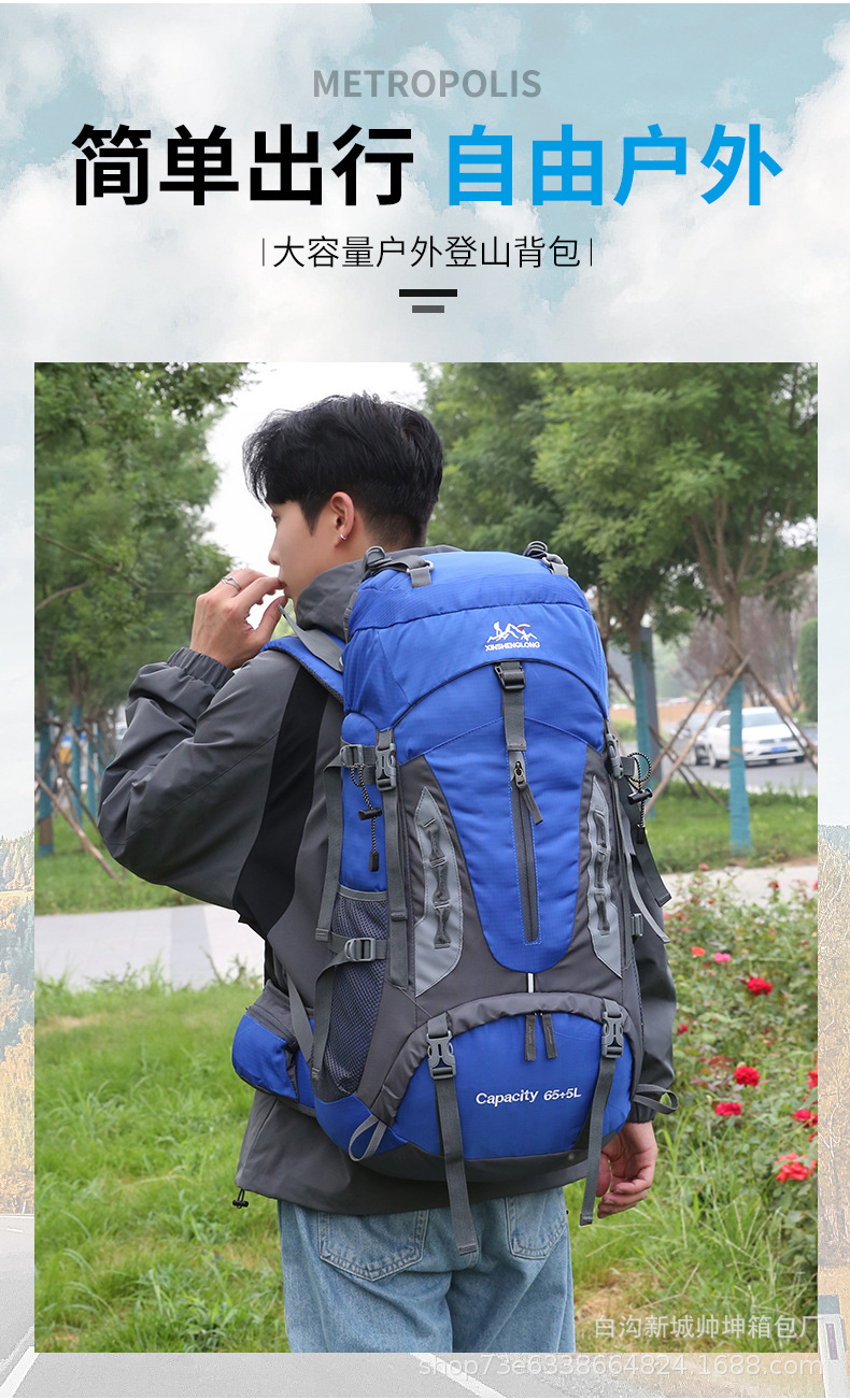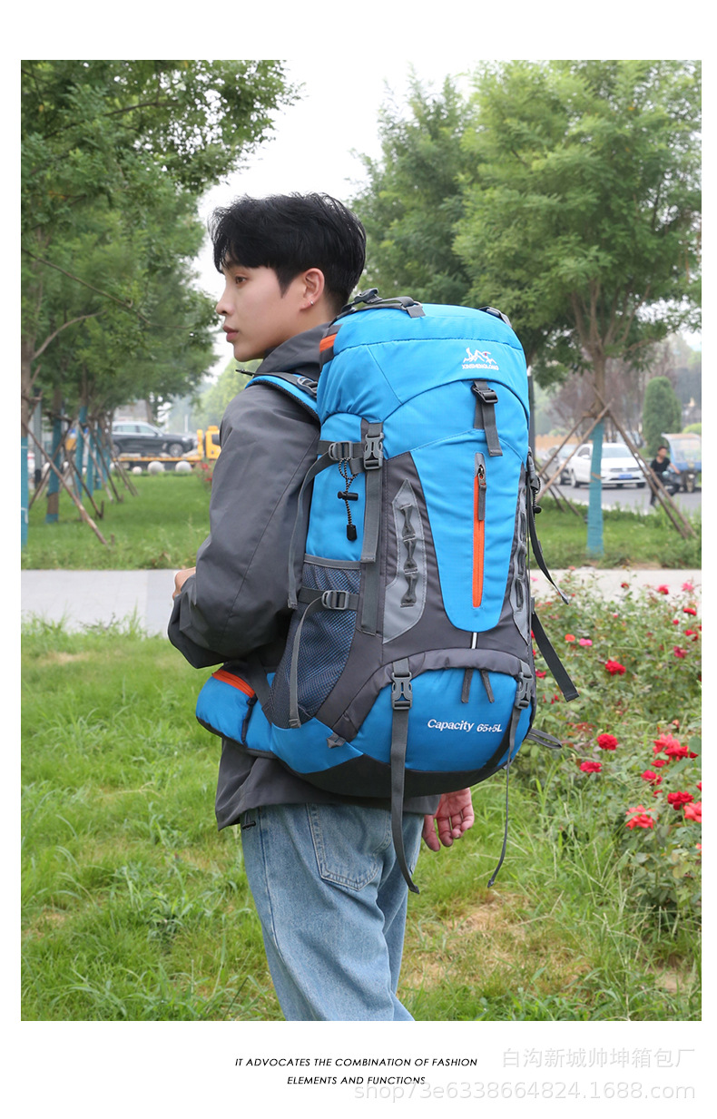 국경 새로운 70L 대용량 야외 하이킹 산 가방 발수 야외 배낭 배낭 배낭