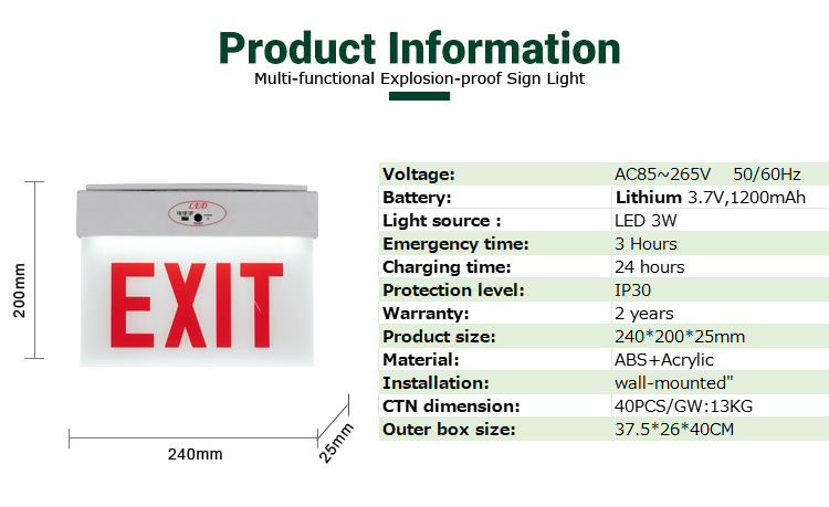 국경 간 LED 비상 표지판 천장 투명 태그 비상등 안전 출구 임베디드 상단 대피 표시기스토어 가기