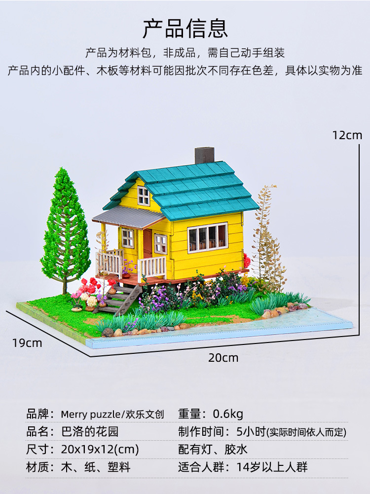 diy小屋系列由我们原创设计和自主生产。严谨的生产工序保证产品的色彩鲜艳,切割精确。确保每一块的拼装高度配合,成品效果美观。欢迎各位合作伙伴!