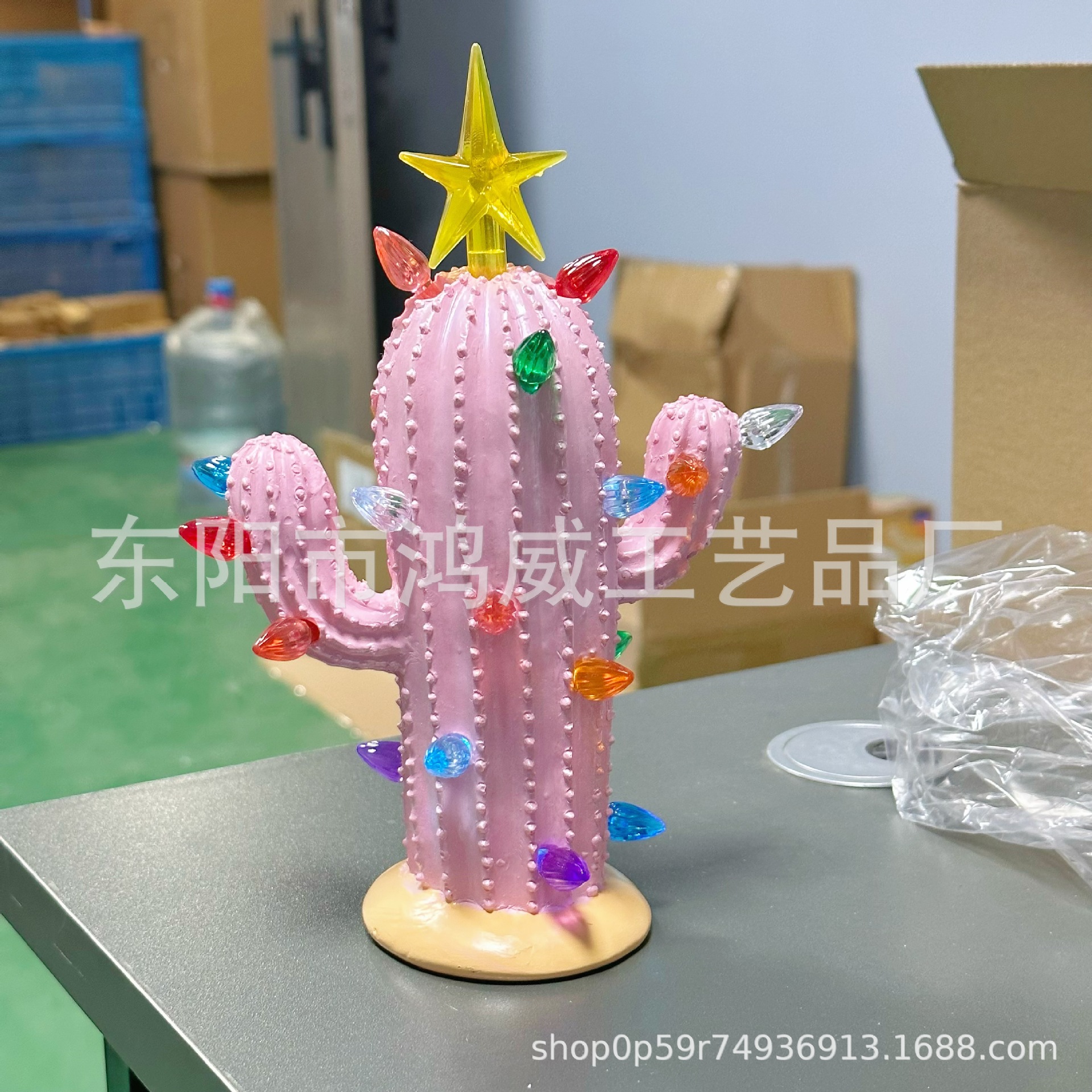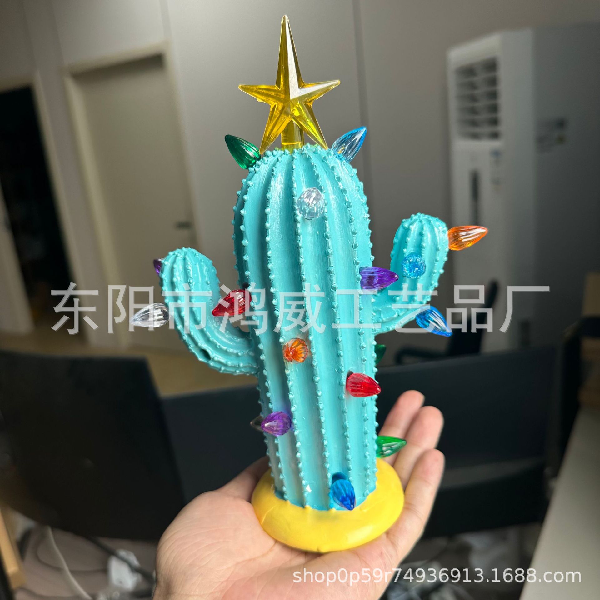 새로운 국경 선인장 수지 동상 LED 빛 가정 장식 휴일 분위기 선물 장식 책상 침대 옆