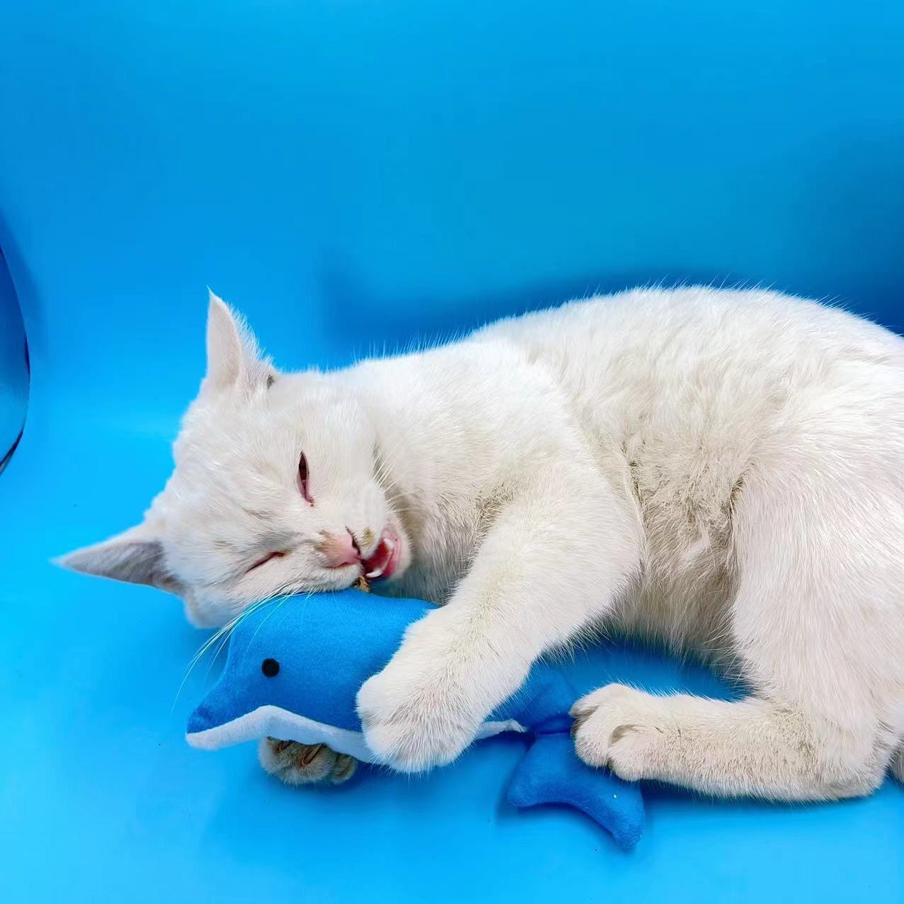 공장 도매 고양이 공급 봉제 장난감 푸른 작은 돌고래 개박하 곤충 gall 과일 재미있는 고양이 장난감 물린 자기 안녕