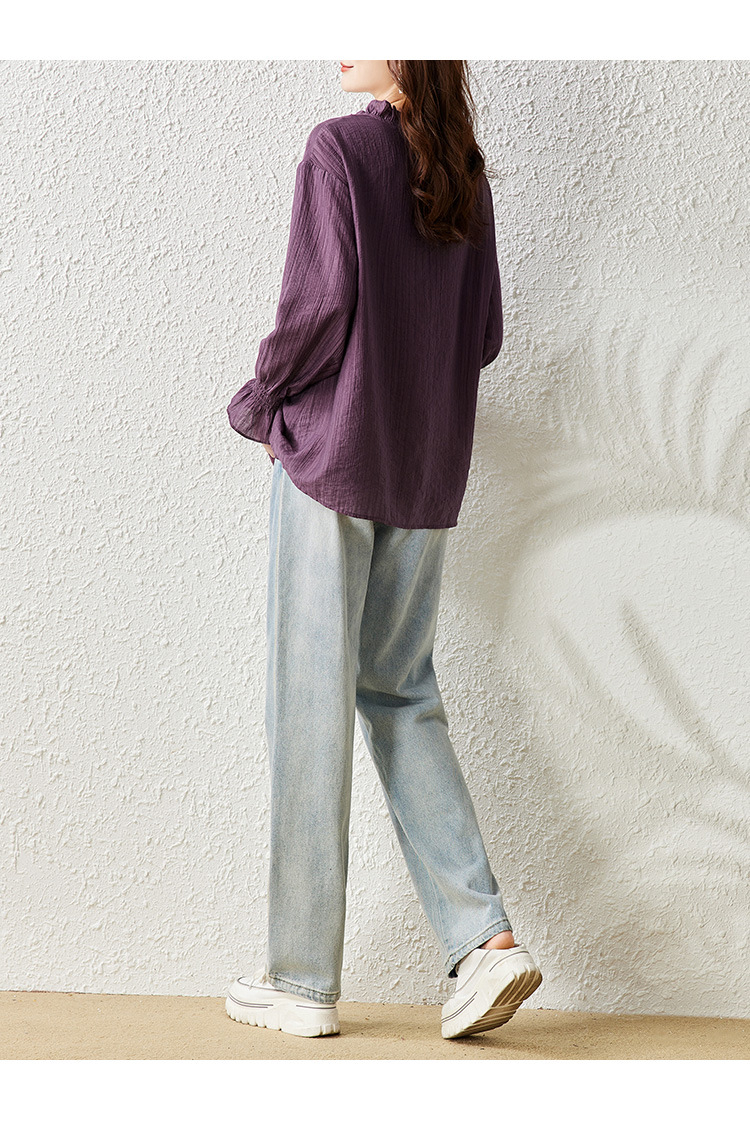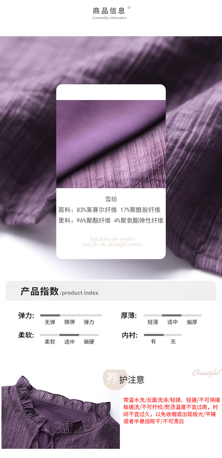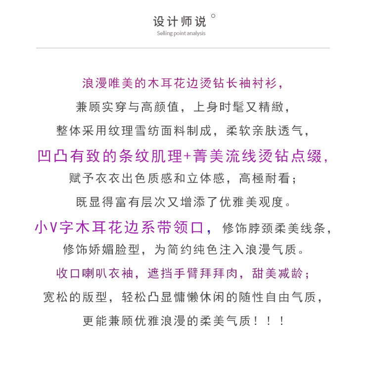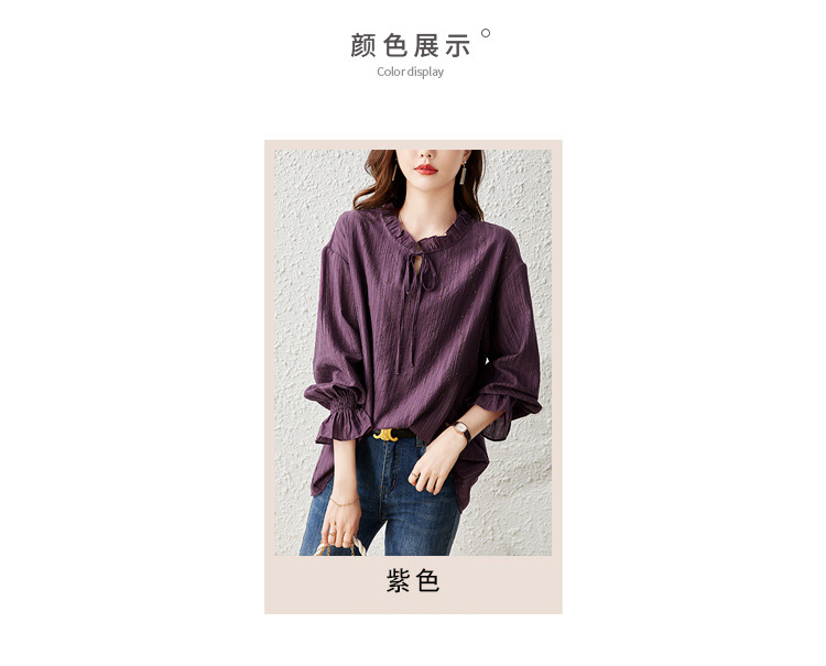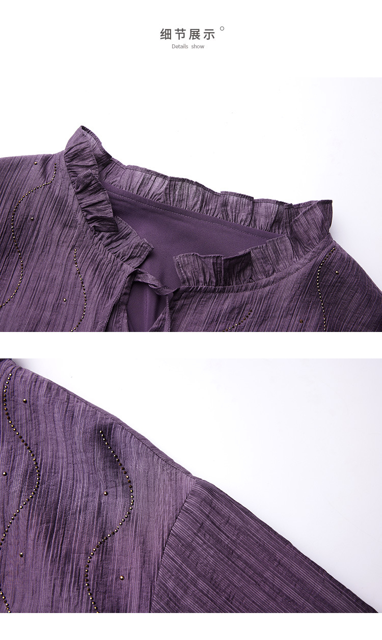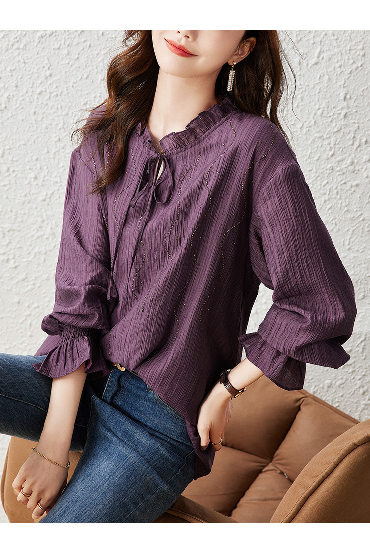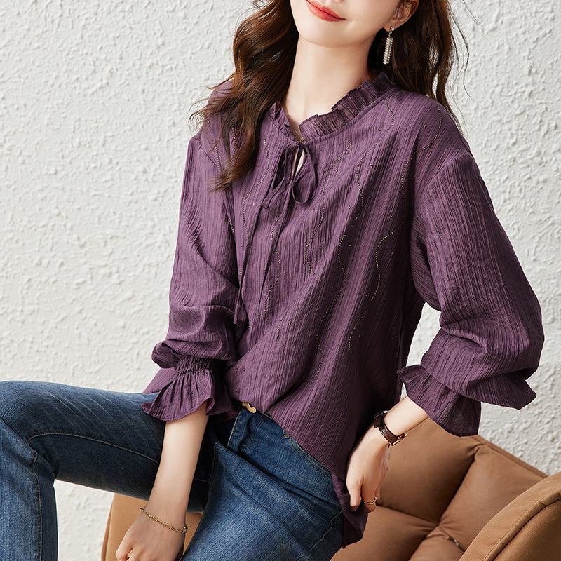 실제 사진 촬영된 러플 장식과 큐빅 장식의 쉬폰 블라우스, 루즈핏, 통통한 여성을 위한 유럽 스타일의 큰 사이즈 신상 여성복, 가을스토어 가기