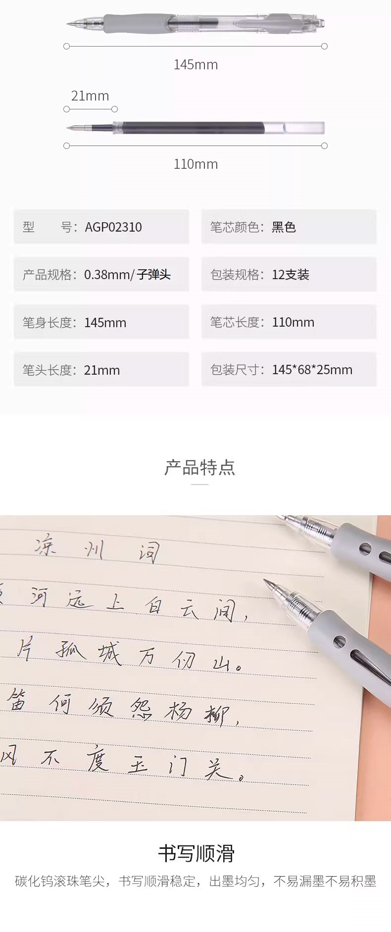 청광 젤 펜 간단한 AGP02310 프레스 총알 0.38mm 쓰기 부드러운