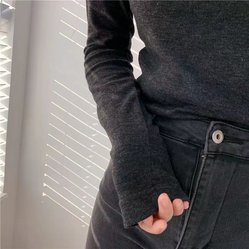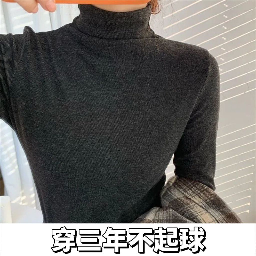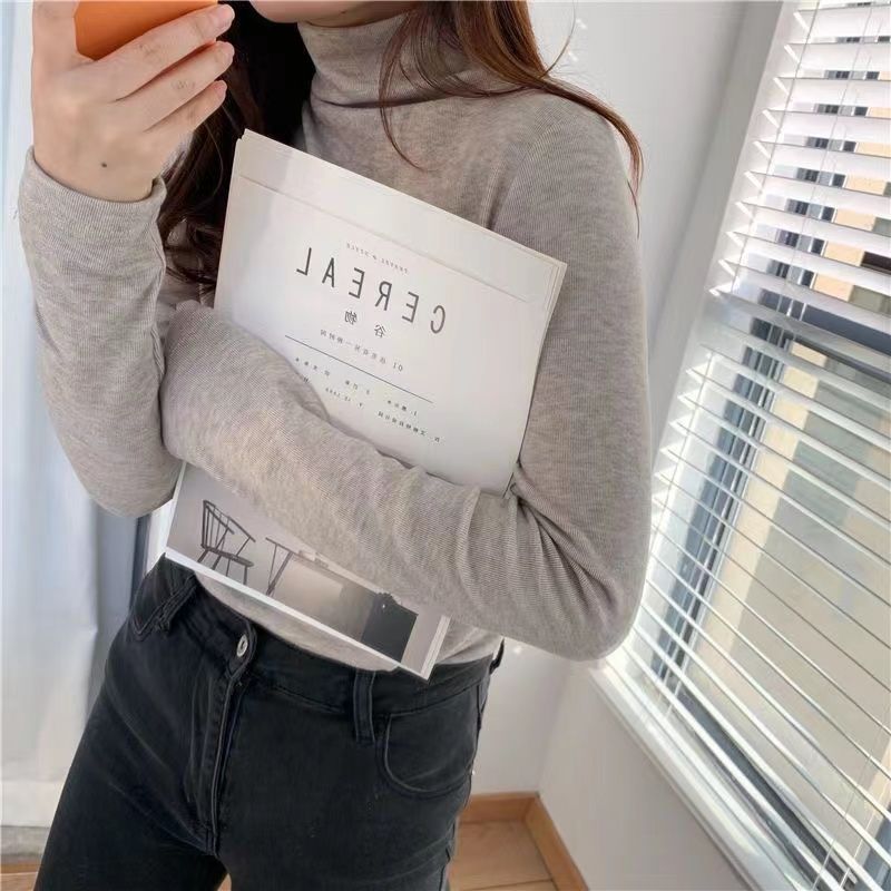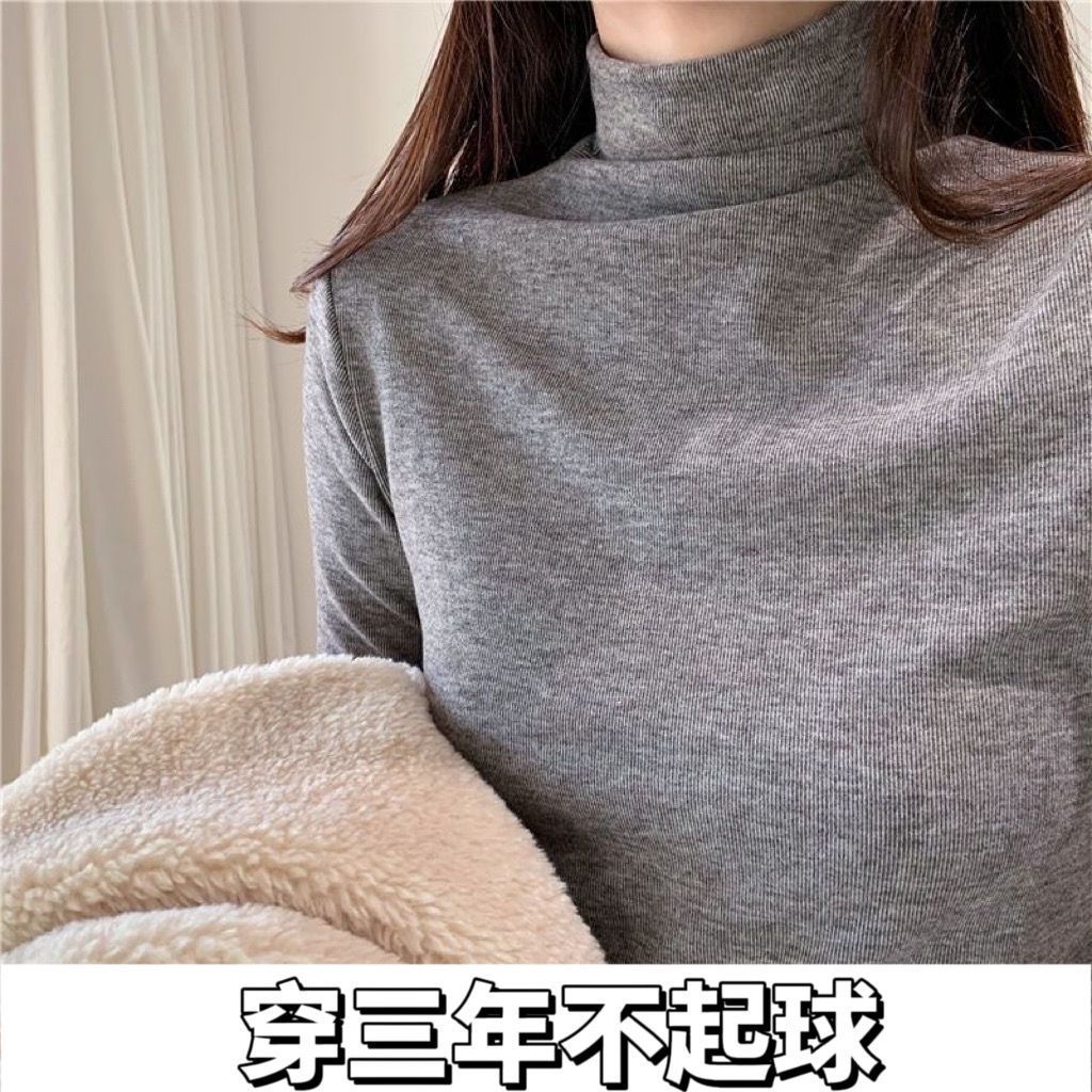 가을과 겨울 새로운 하프 터틀넥 바닥 셔츠는 두꺼운 여성의 슬림 핏 플러스 사이즈 단색 올 매치 따뜻한 긴 소매 상단을 기모스토어 가기