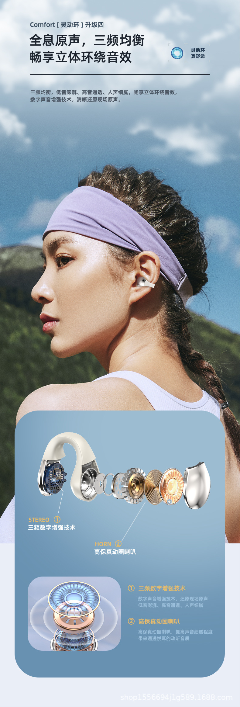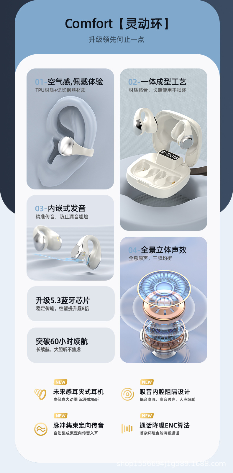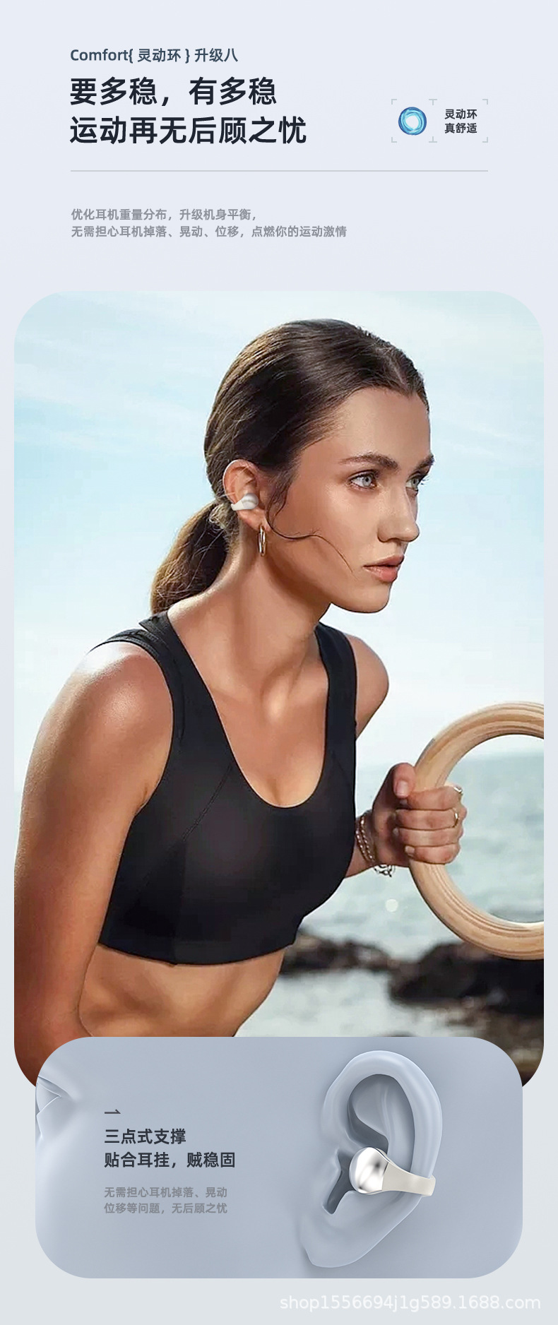 새로운 무선 블루투스 헤드셋 귀 클립이없는 공기 뼈 전도 초장 내구성 높은 음질을 실행하는 편안한 스포츠스토어 가기