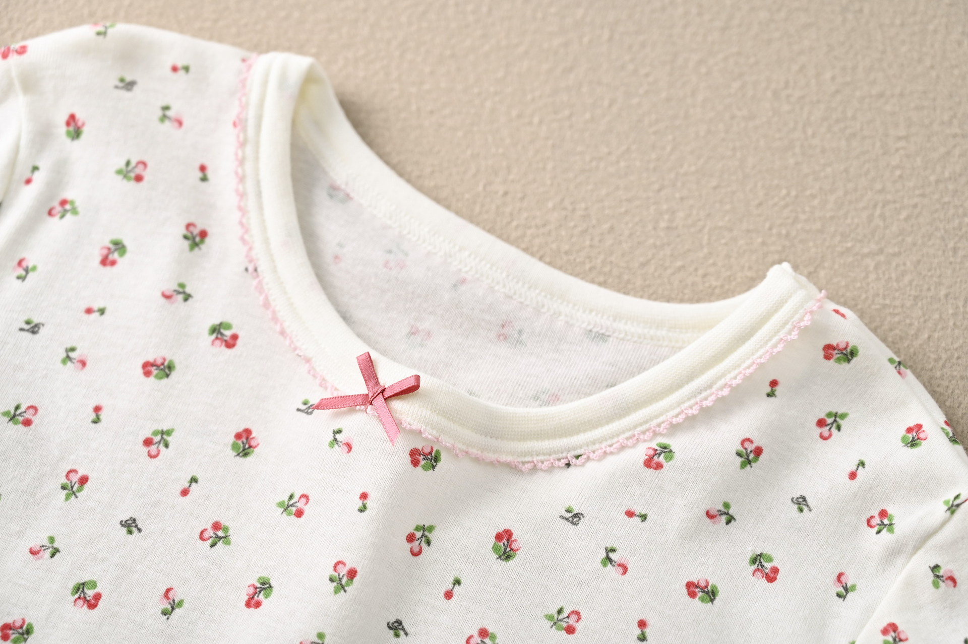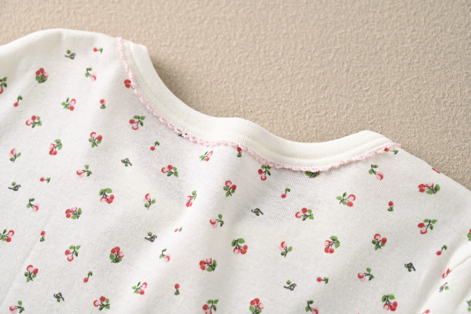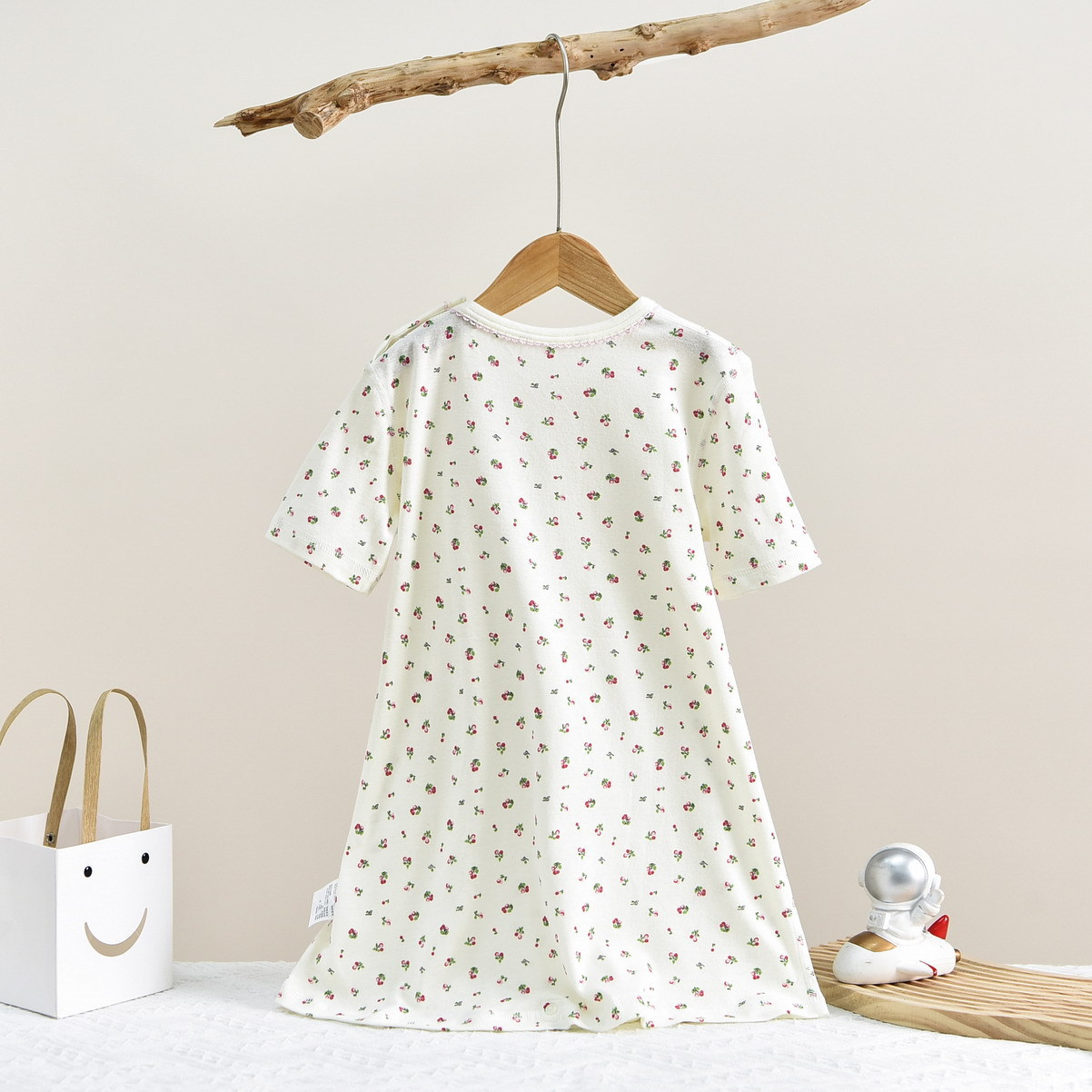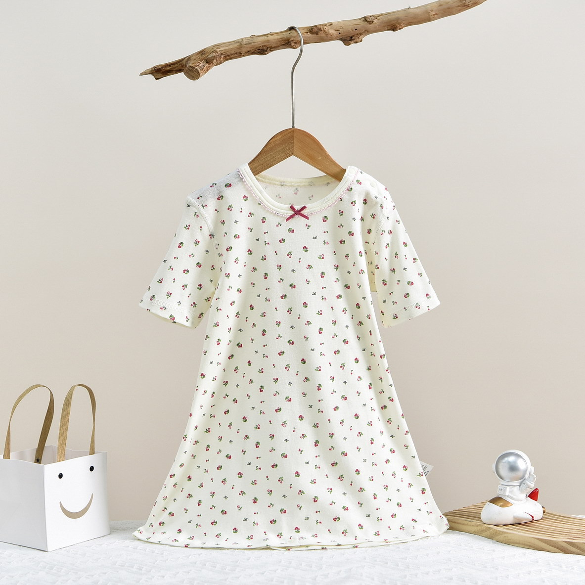 • SQ058 짧은 소매 침낭 작은 체리 베이지 (1 팩)