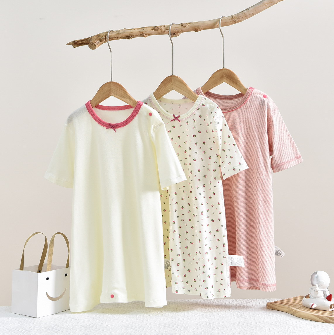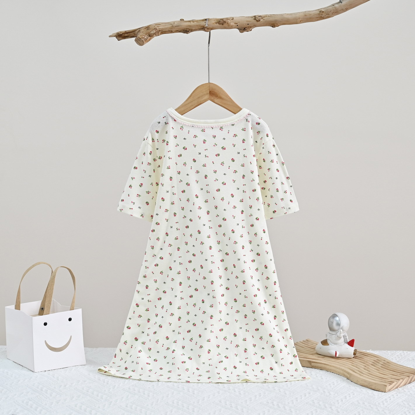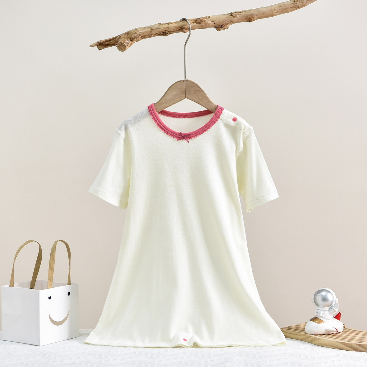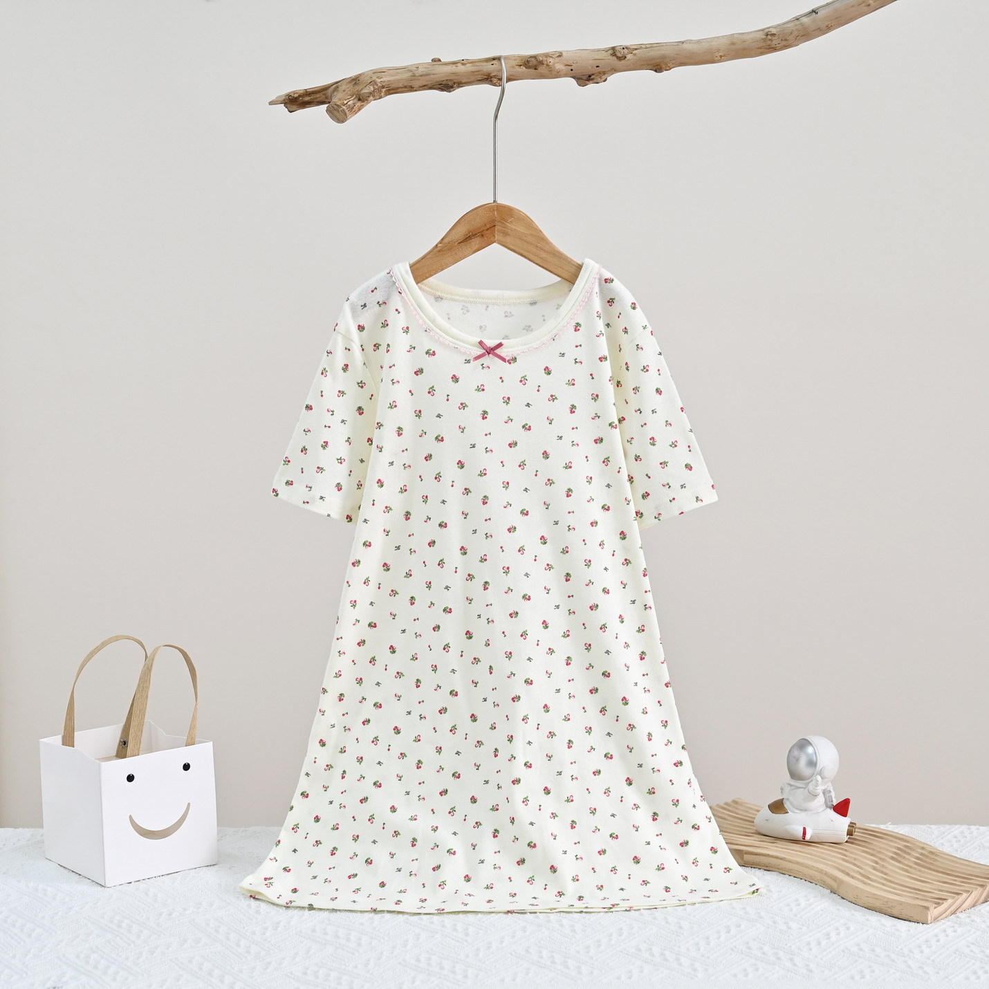 • SQ058 짧은 소매 침낭 작은 체리 베이지 (1 팩)