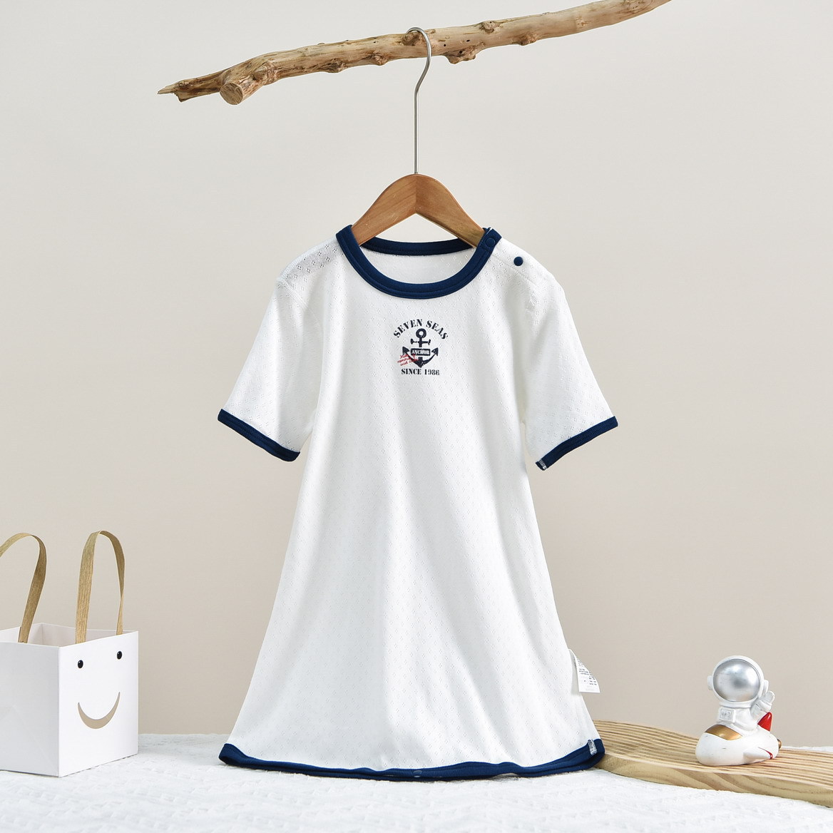 • SQ060 짧은 소매 침낭 파란색 앵커 줄무늬 (1 팩)