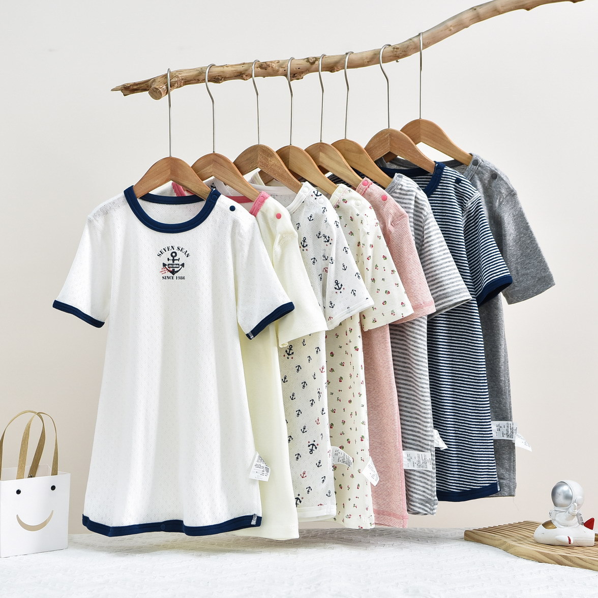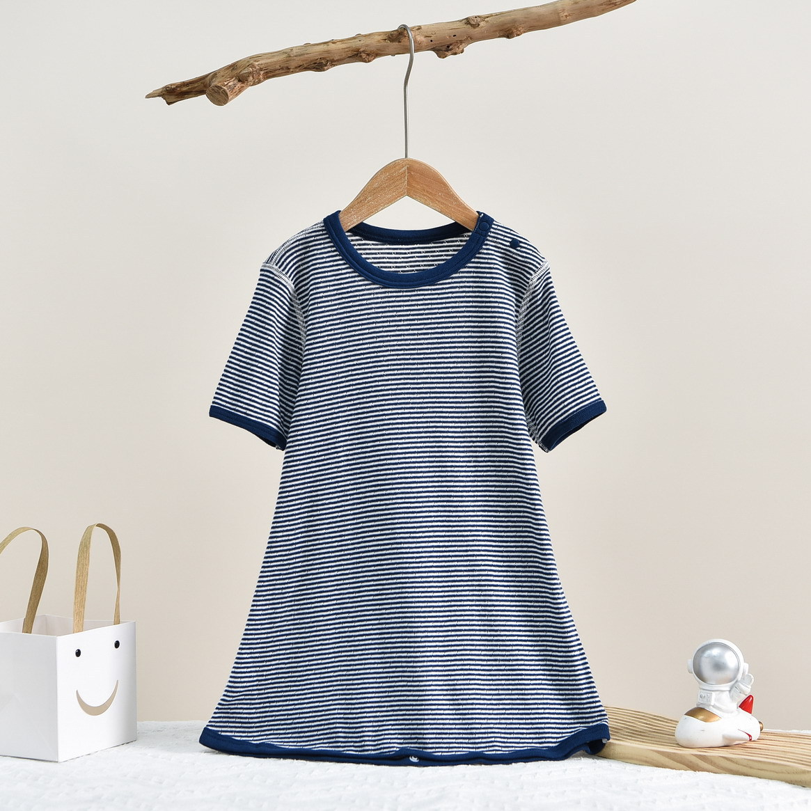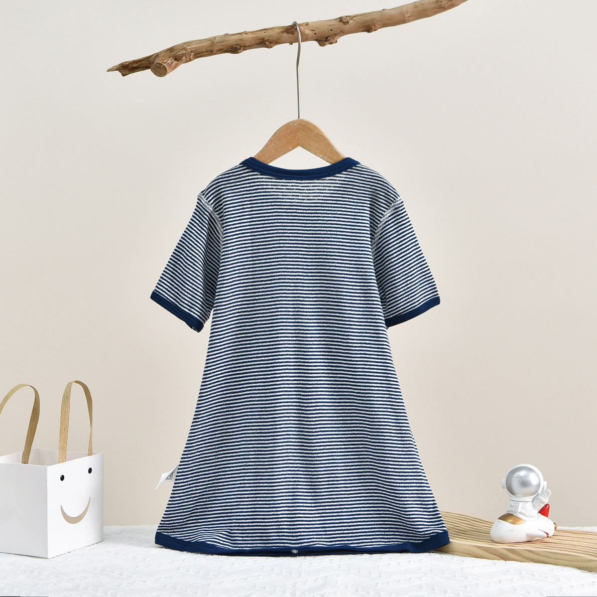 • SQ1001 짧은 소매 침낭 작은 코끼리 줄무늬 (1 팩)