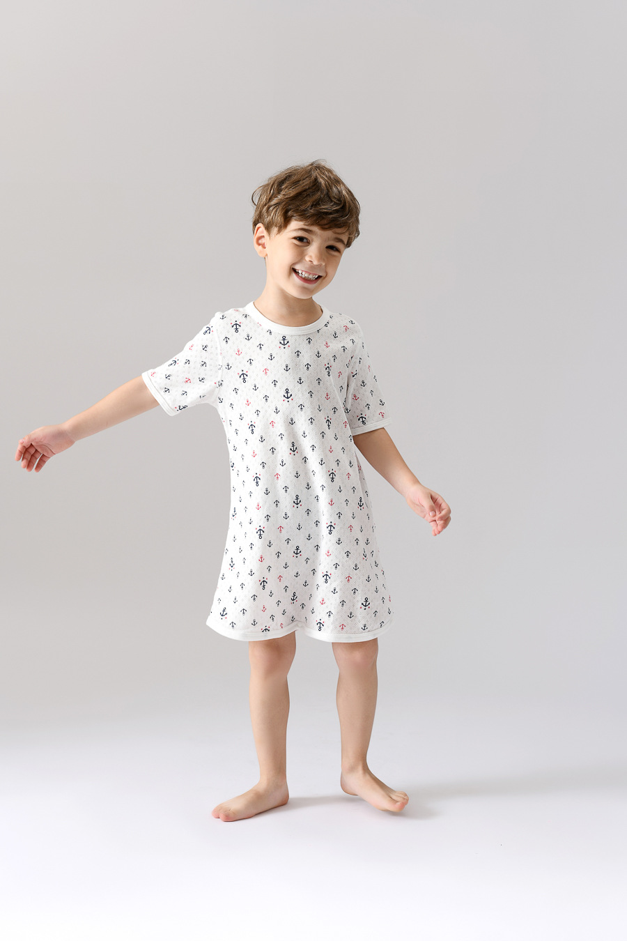• SQ059 짧은 소매 침낭 블루 앵커 전체 인쇄 (1 팩)