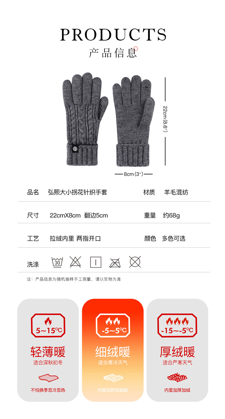 겨울철 방한 야외 라이딩을 위한 국경 간 인기 울 혼방 터치 스크린 장갑 유럽과 미국 공장 직접 공급스토어 가기