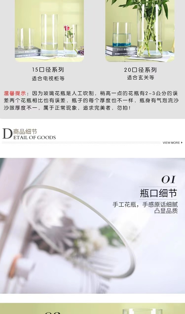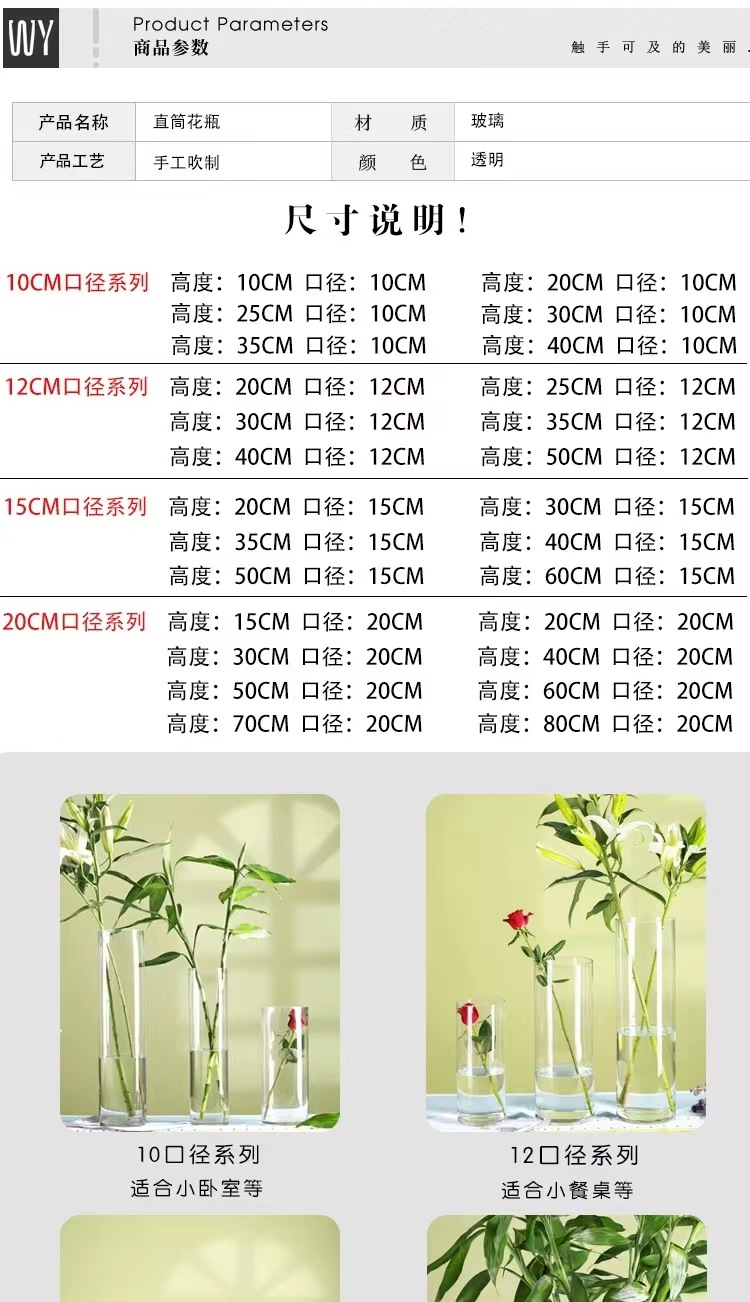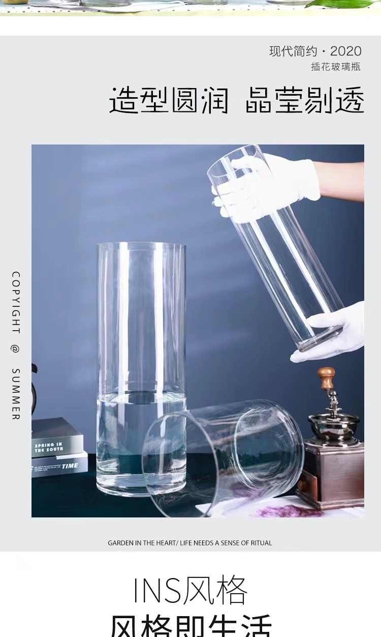 꽃병 장식 거실 꽃꽂이 투명 유리 병 in 스타일 술 취한 나무 물 기르는 넓은 입 인터넷 유명 인사 큰 풍부한 대나무스토어 가기